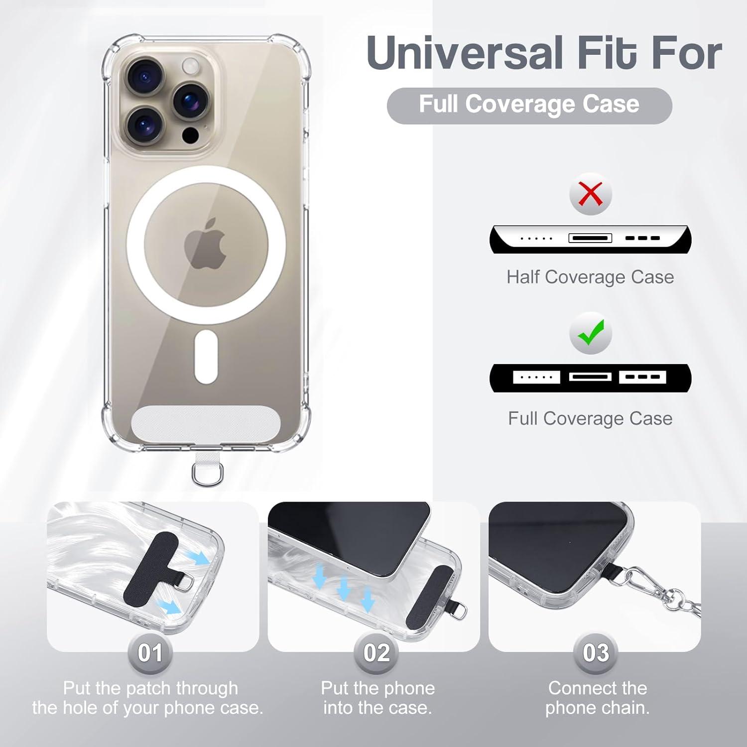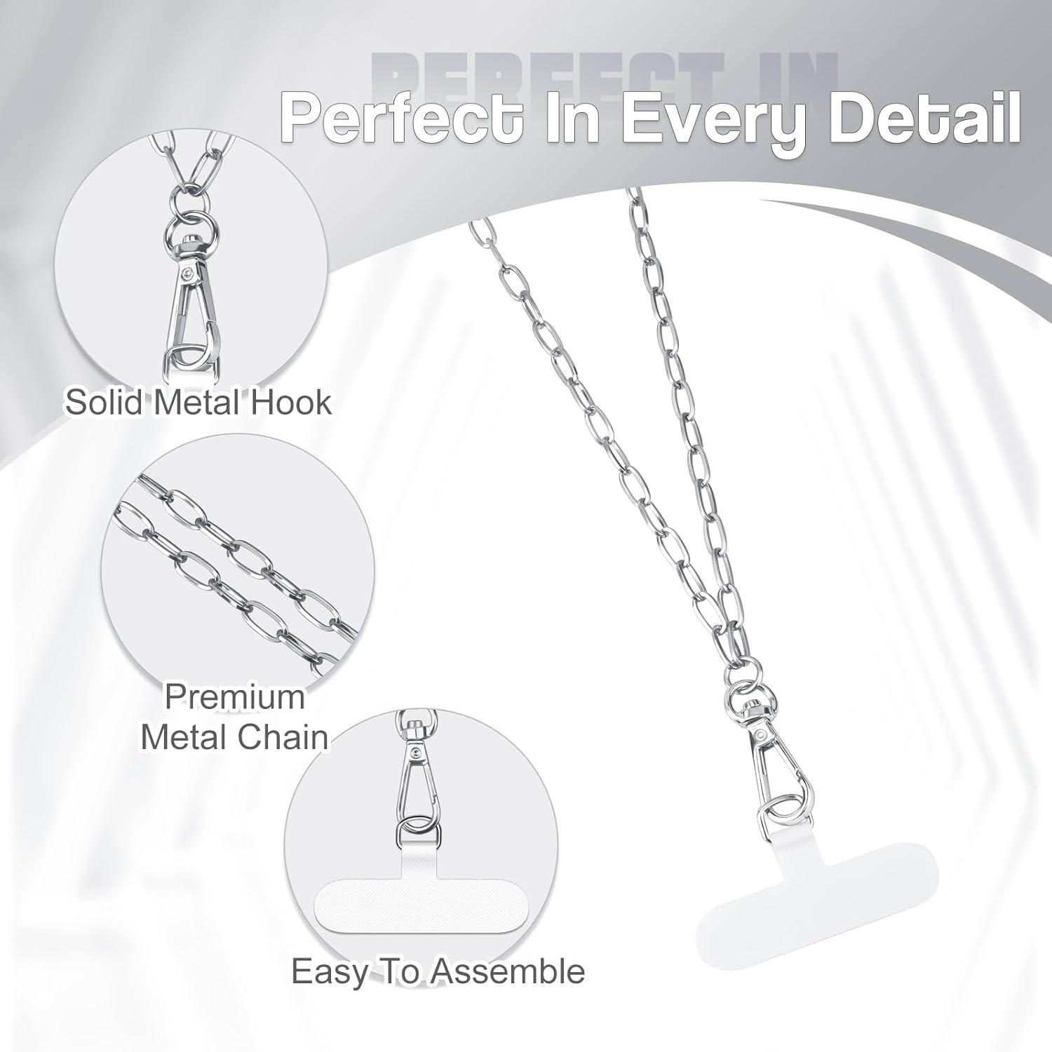 TiMOVO Phone Crossbody Strap, Universal Phone Lanyard with 1× 50.39in Metal Phone Strap, 1× 14.2in Wrist Strap, 2× Pads, Phone Lanyards, Phone Chain Compatible with Most Smartphones, Bright Silver