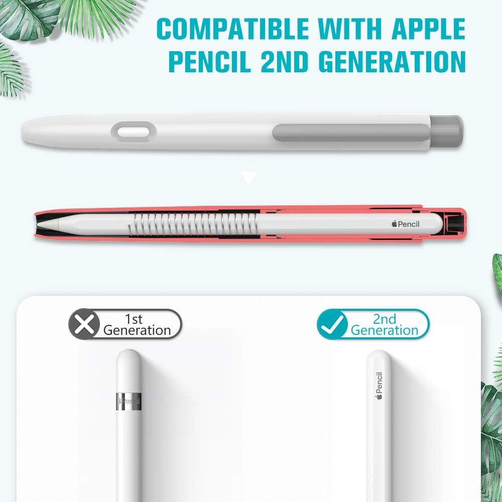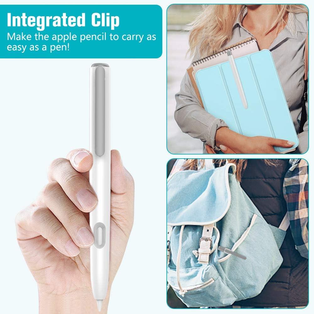 TiMOVO Holder Case Fit Pencil 2nd Generation, Retractable Protective Tip Cap Cover Fit iPad Mini 6 2021/ iPad Air 5th/4th Gen/iPad Pro 11 /Pro 12.9 2021/2020,White & Gray