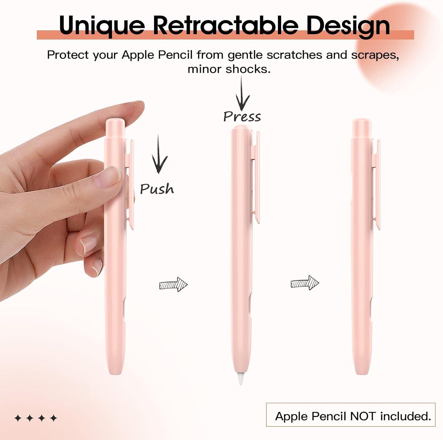 TiMOVO Pencil Case Compatible with Apple Pencil Pro & Apple Pencil 2nd Generation, Retractable Protective Pencil Case Cover with Sturdy Clip for iPad Pencil, Support Double-Tap, Light Pink