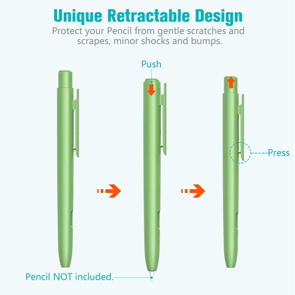 TiMOVO Pencil Holder Case Fit Apple Pencil 2nd Generation,Anti-Scratch Retractable Protective Tip Cap Case Fit iPad Mini 6 2021, iPad Air 5/4 2022, iPad Pro 11/12.9(2021/2020/2018) – Green