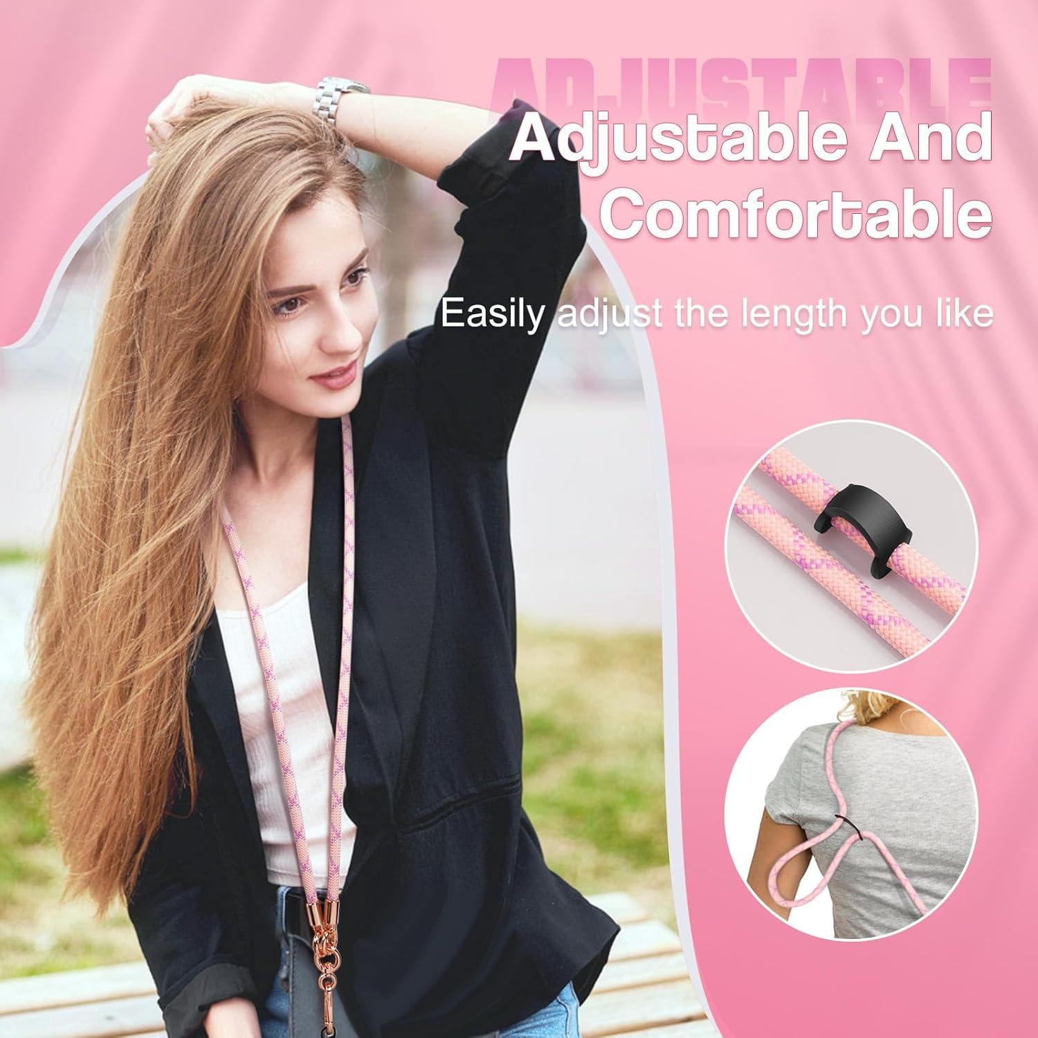 TiMOVO Universal Phone Lanyard Crossbody, Adjustable Anti-Theft Phone Strap Crossbody for Phone Cases, Cell Phone Neck Lanyard Wrist Strap for Women, Khaki(Pink)