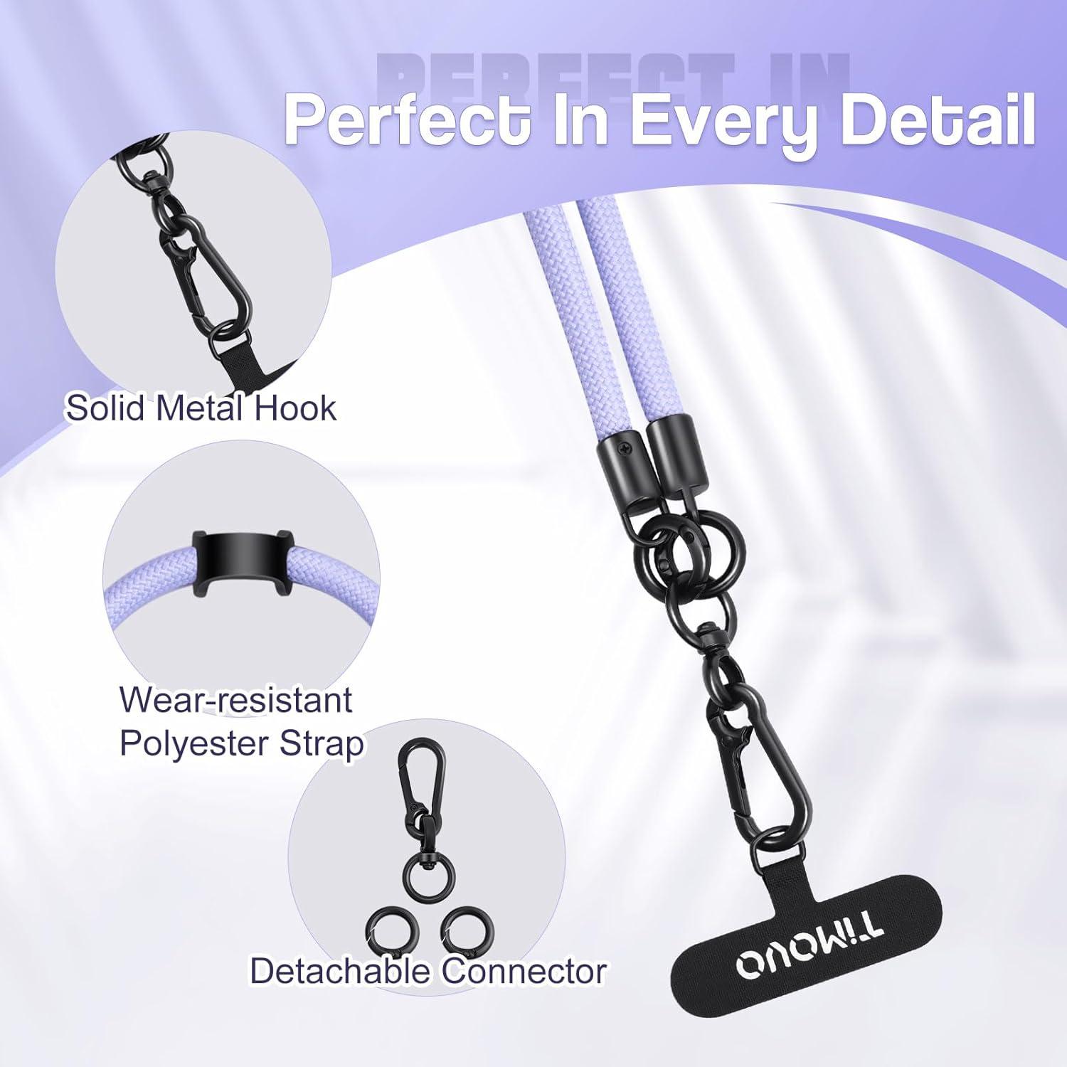 TiMOVO Universal Phone Lanyard Crossbody, Adjustable Anti-Theft Phone Strap Crossbody for Phone Cases, Cell Phone Neck Lanyard Wrist Strap for Women, Khaki(Light Purple)