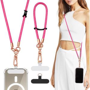 TiMOVO Universal Phone Lanyard Crossbody, Adjustable Anti-Theft Phone Strap Crossbody for Phone Cases, Cell Phone Neck Lanyard Wrist Strap for Women, Khaki(Magenta)