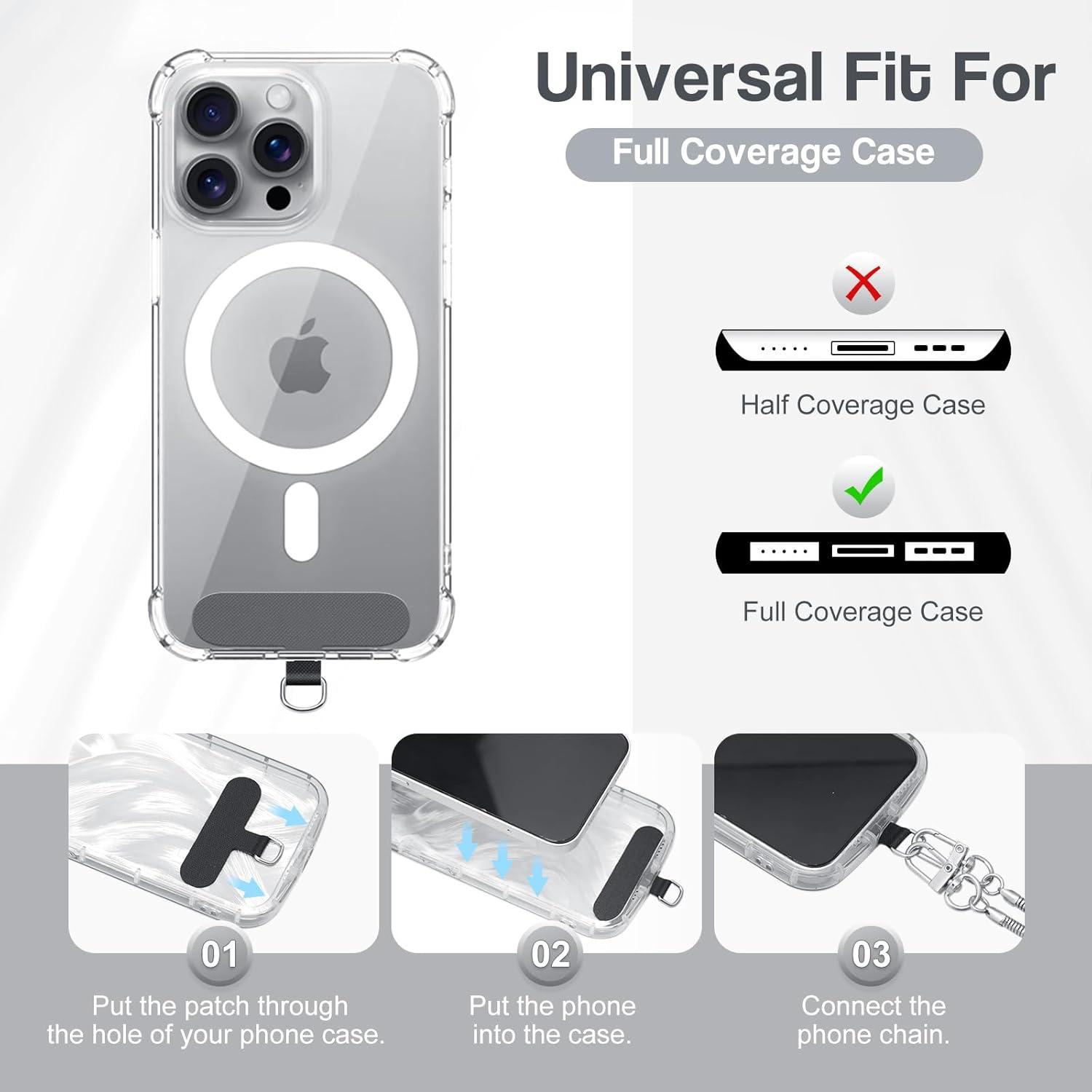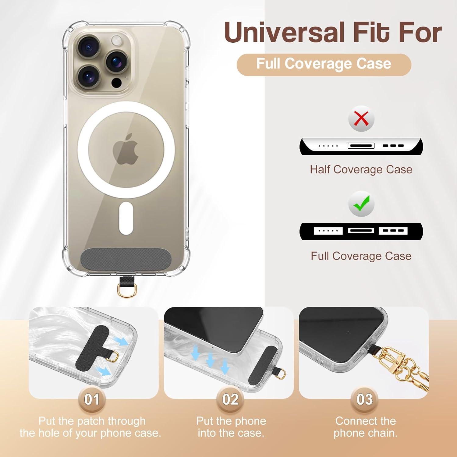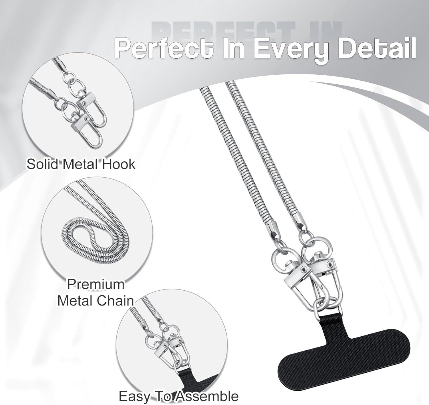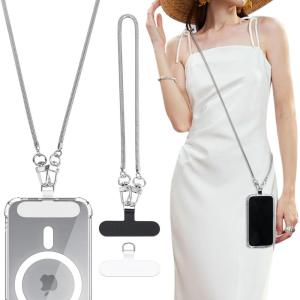 TiMOVO Phone Crossbody Strap, Universal Phone Lanyard with 1× Metal Phone Strap, 1× Wrist Strap, 2× Pads, Crossbody Phone Lanyards, Phone Chain Compatible with Most Smartphones, Bright Silver(Bright Silver)