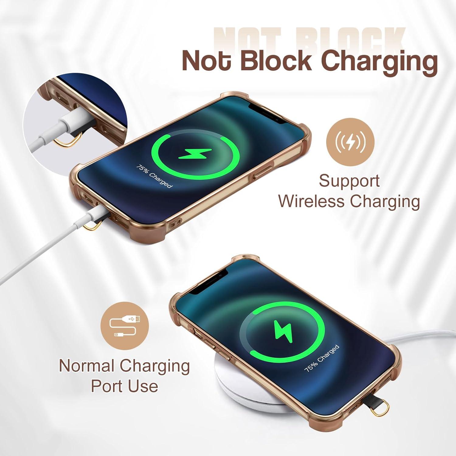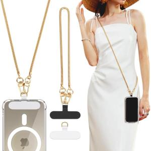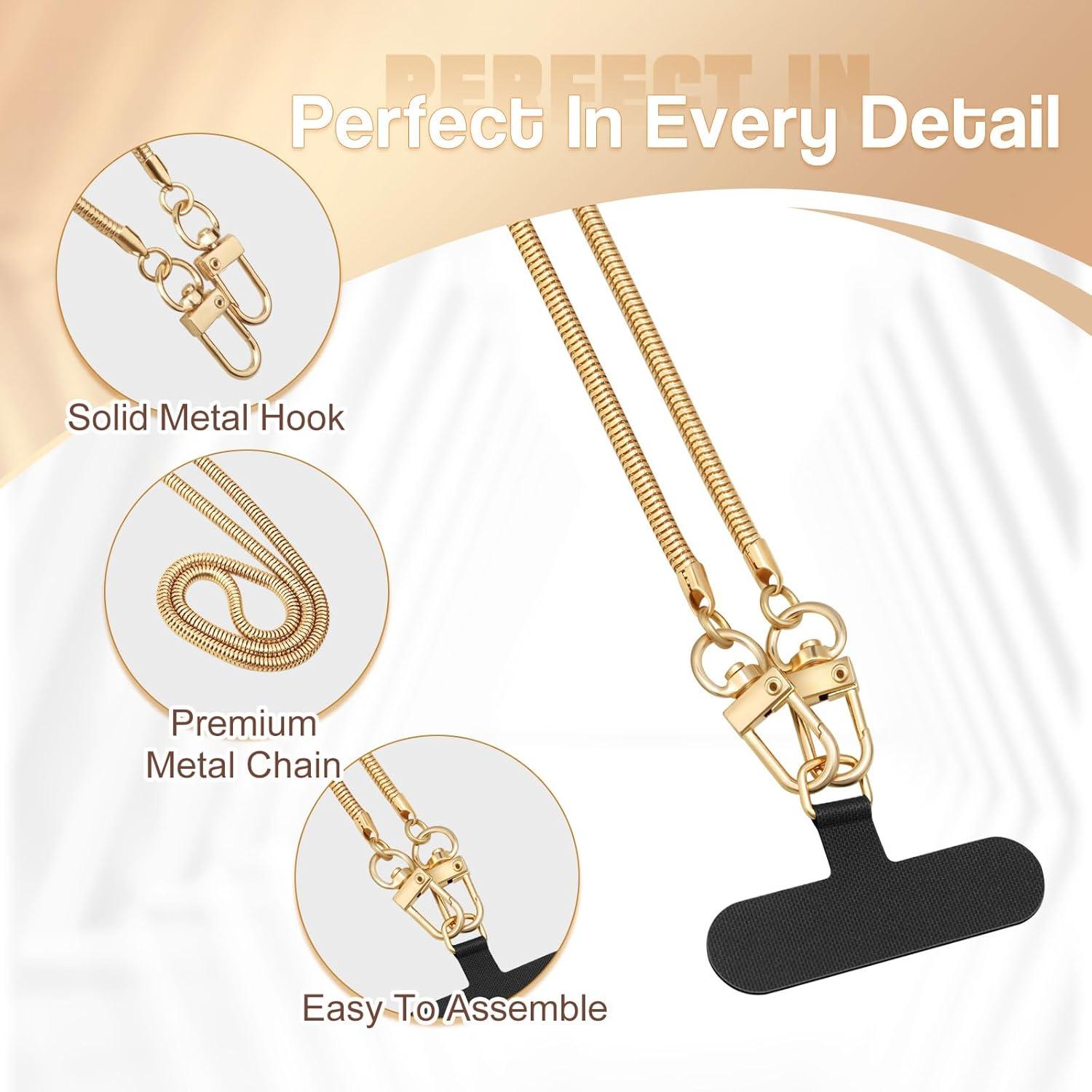TiMOVO Phone Crossbody Strap, Universal Phone Lanyard with 1× Metal Phone Strap, 1× Wrist Strap, 2× Pads, Crossbody Phone Lanyards, Phone Chain Compatible with Most Smartphones, Bright Silver(Gold)