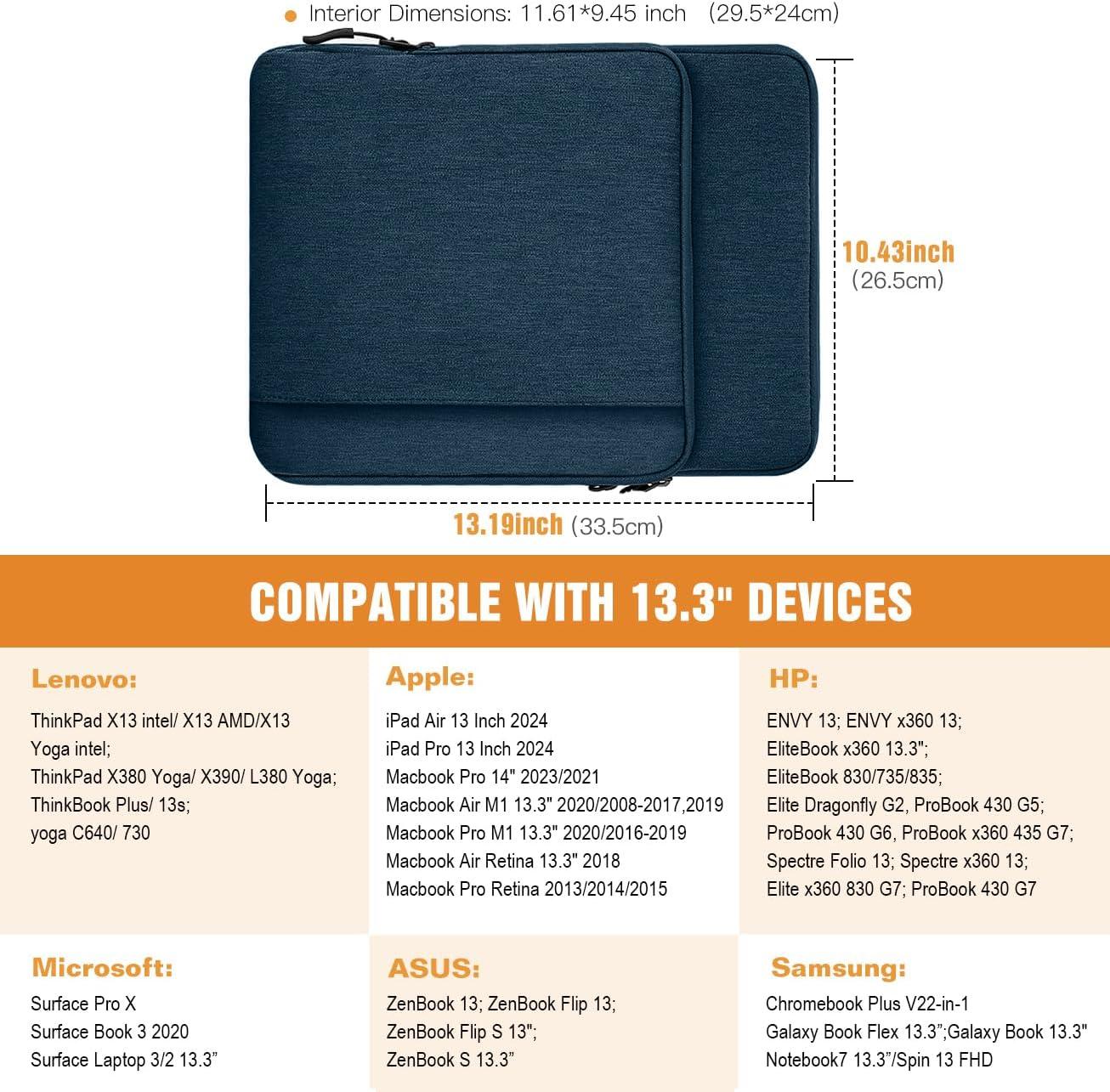 【Fit for】 – Designed for 13.3-14 inch Laptops and tablets and fits smart keyboard. Fit for iPad Air 13 Inch 2024, iPad Pro 13 Inch 2024,Surface Pro 9/8/X/7/6/5/4/3, MacBook Air 13 2018-2022(A2179/A1932), MacBook Pro 13 2016-2022(A2251/A2289/A2159/A1989/A1706/A1708), iPad Pro 12.9 Inch 2022/2021/2020/2018, Galaxy Tab S9+/S8+, Galaxy Tab S7+, IdeaPad 710S/720S 13.3″, HP Elitebook X360 13.3″, HP Envy 13, Dell XPS 13″, etc. NOT compatible with MacBook Air 13 2010-2017 and MacBook Pro 13 2008-2015.