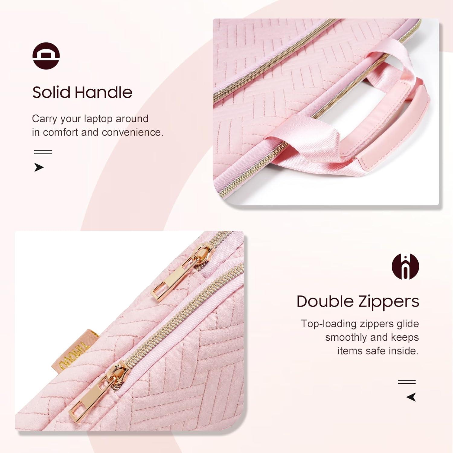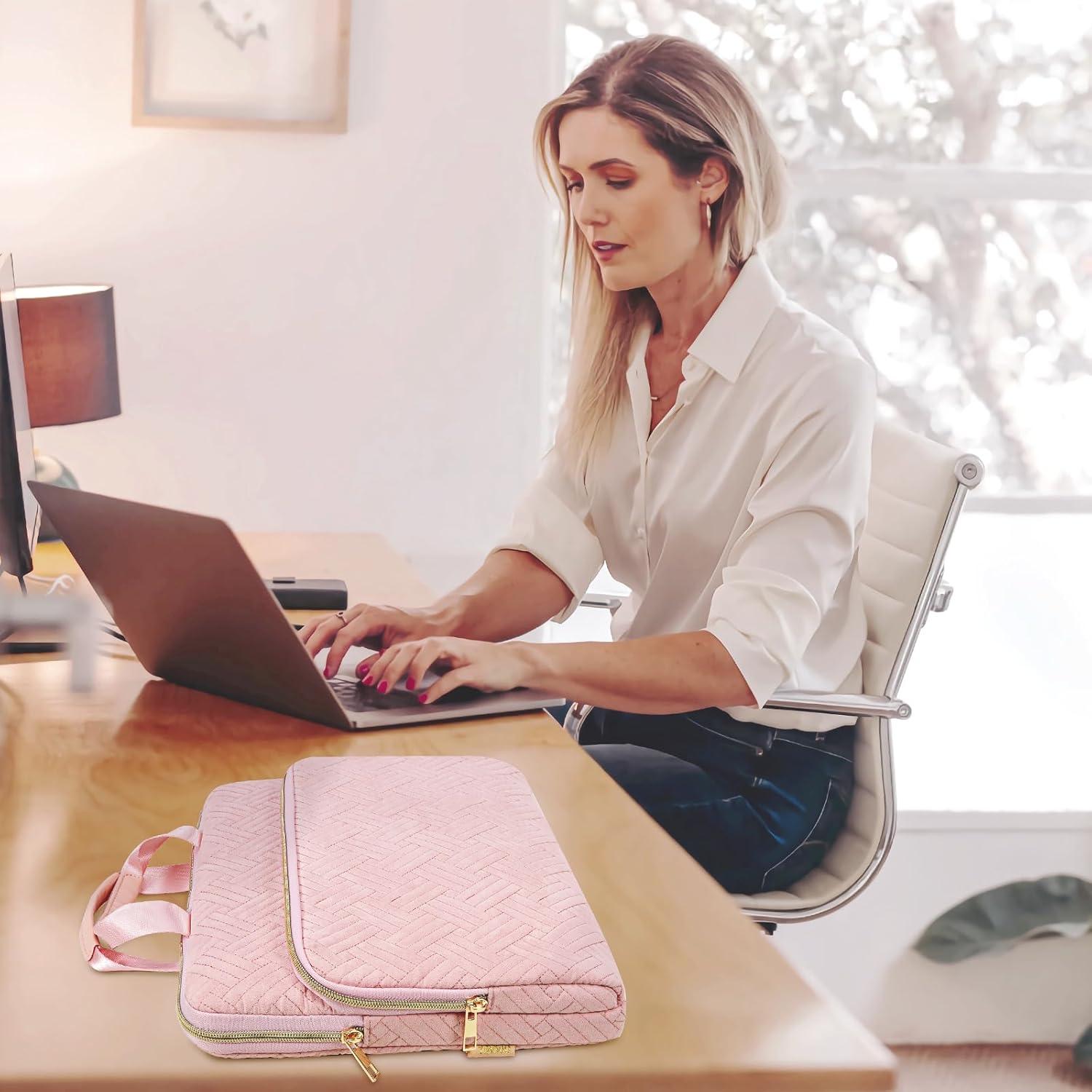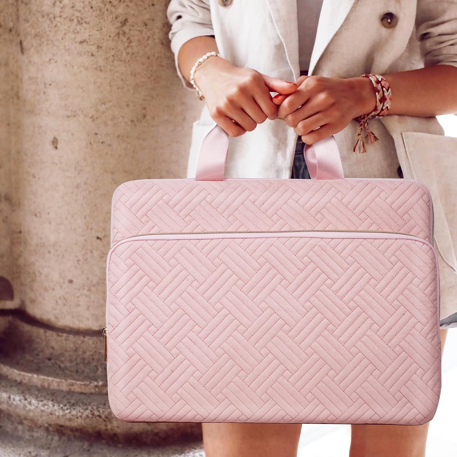 TiMOVO 15.6 Inch Laptop Sleeve Compatible with MacBook Air Pro, 15.6 Inch HP, Dell, Lenovo, Asus Notebook, Protective Laptop Carrying Case Bag with Handle, Pink(Pink)