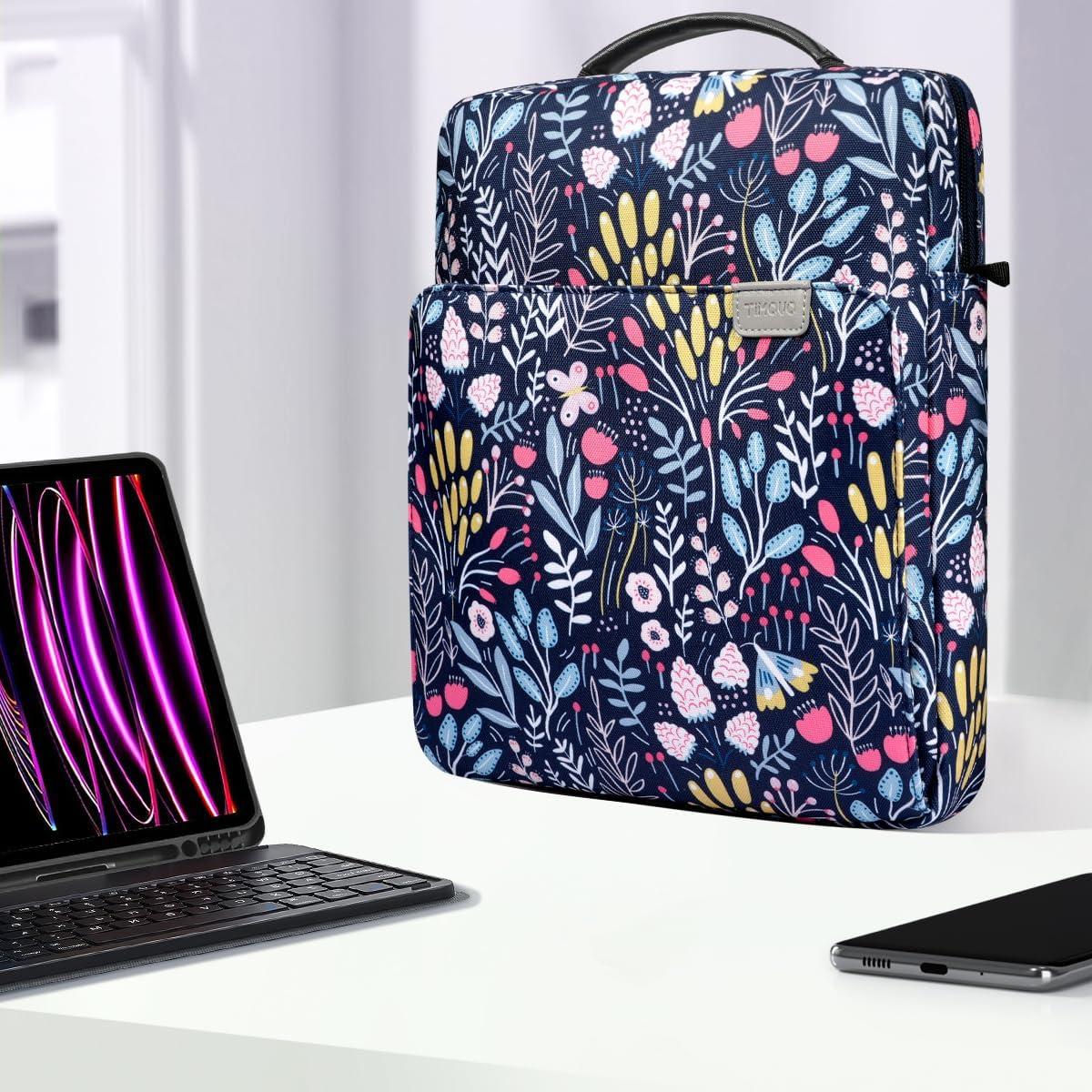 TiMOVO 9-11 Inch Tablet Sleeve Bag with Shoulder Strap for iPad 11-inch A16 2025, iPad 10.9″/10.2″| Air 11/5th/4th Gen. 10.9″| Galaxy Tab A9 Plus 11″, Pink(Ab-colorful Flower)