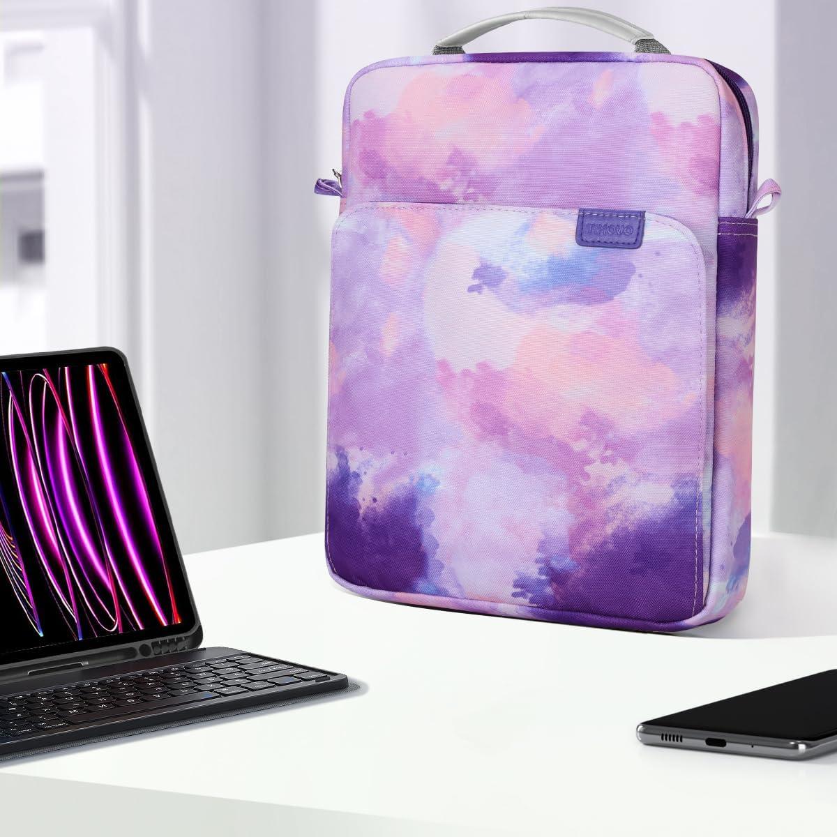 TiMOVO 9-11 Inch Tablet Sleeve Bag with Shoulder Strap for iPad 11-inch A16 2025, iPad 10.9″/10.2″| Air 11/5th/4th Gen. 10.9″| Galaxy Tab A9 Plus 11″, Pink(Ab-watercolor Purple)