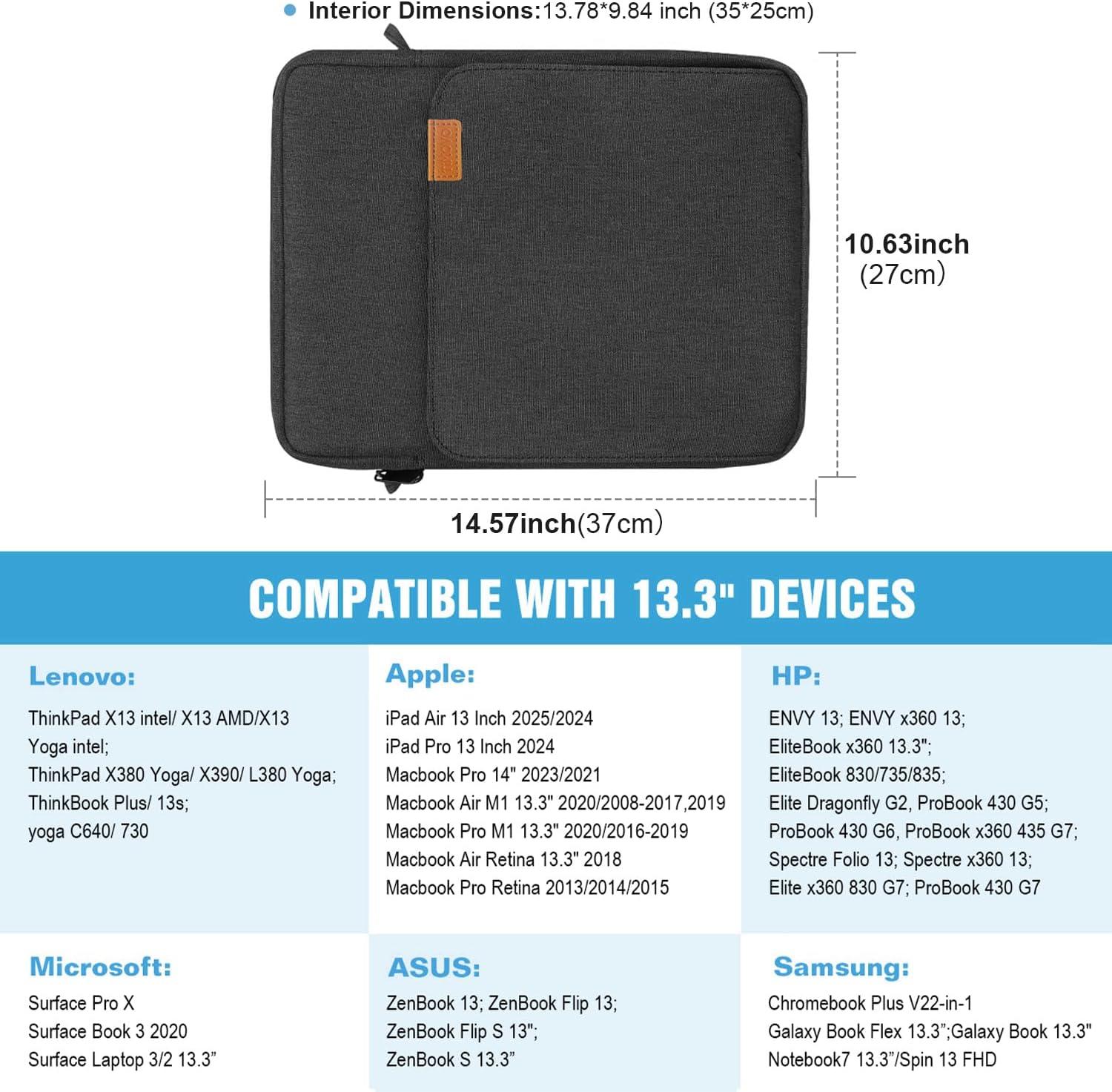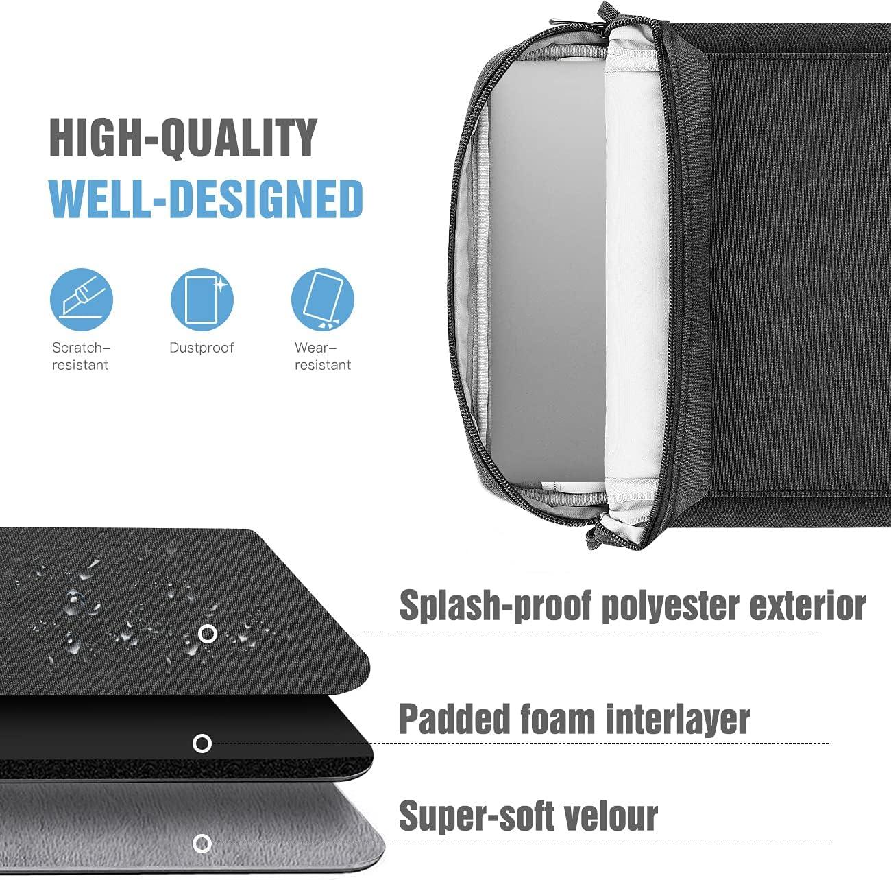 【Waterproof & Durable Materials】 – This protective sleeve is made of premium materials with fine workmanship, the water-repellent exterior can protect against fluids and dust, and the padded foam interlayer and soft fleece interior lining are soft and safe for your device, keeping your device from being accidental bumps and scratched.