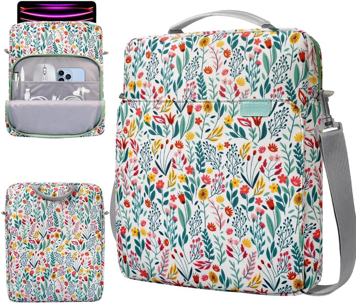 TiMOVO 9-11 Inch Tablet Sleeve Bag with Shoulder Strap for iPad 11-inch A16 2025, iPad 10.9″/10.2″| Air 11/5th/4th Gen. 10.9″| Galaxy Tab A9 Plus 11″, Pink(Flowers)