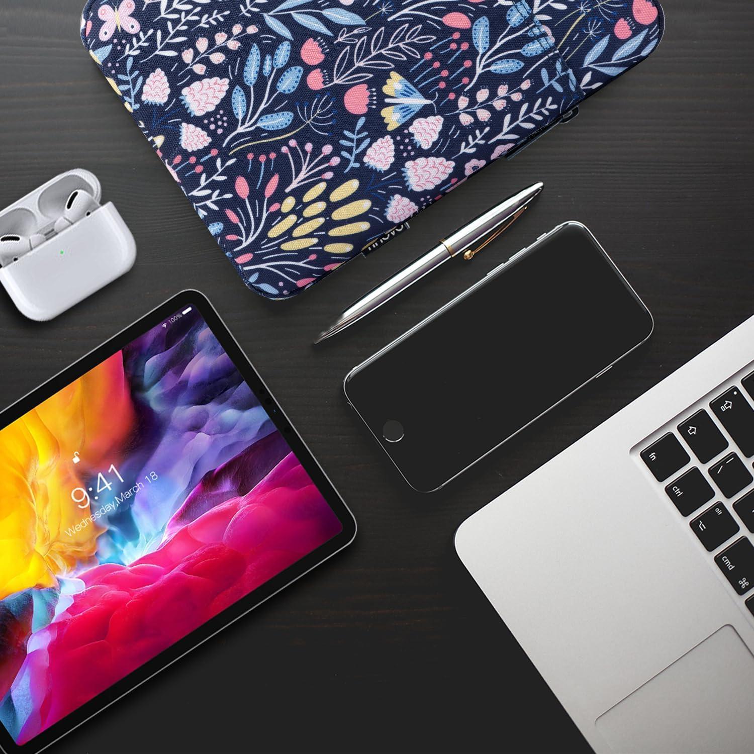 TiMOVO 9-11″ Tablet Sleeve Bag for iPad 11-inch A16 2025, iPad 10th Gen. 10.9″, iPad 10.2″, iPad Air 11 Inch/5th/4th Gen. 10.9″, Galaxy Tab A9 Plus 11″, Protective Bag Fit Smart Keyboard, Dusty Blue(Ab-Colorful Flower)
