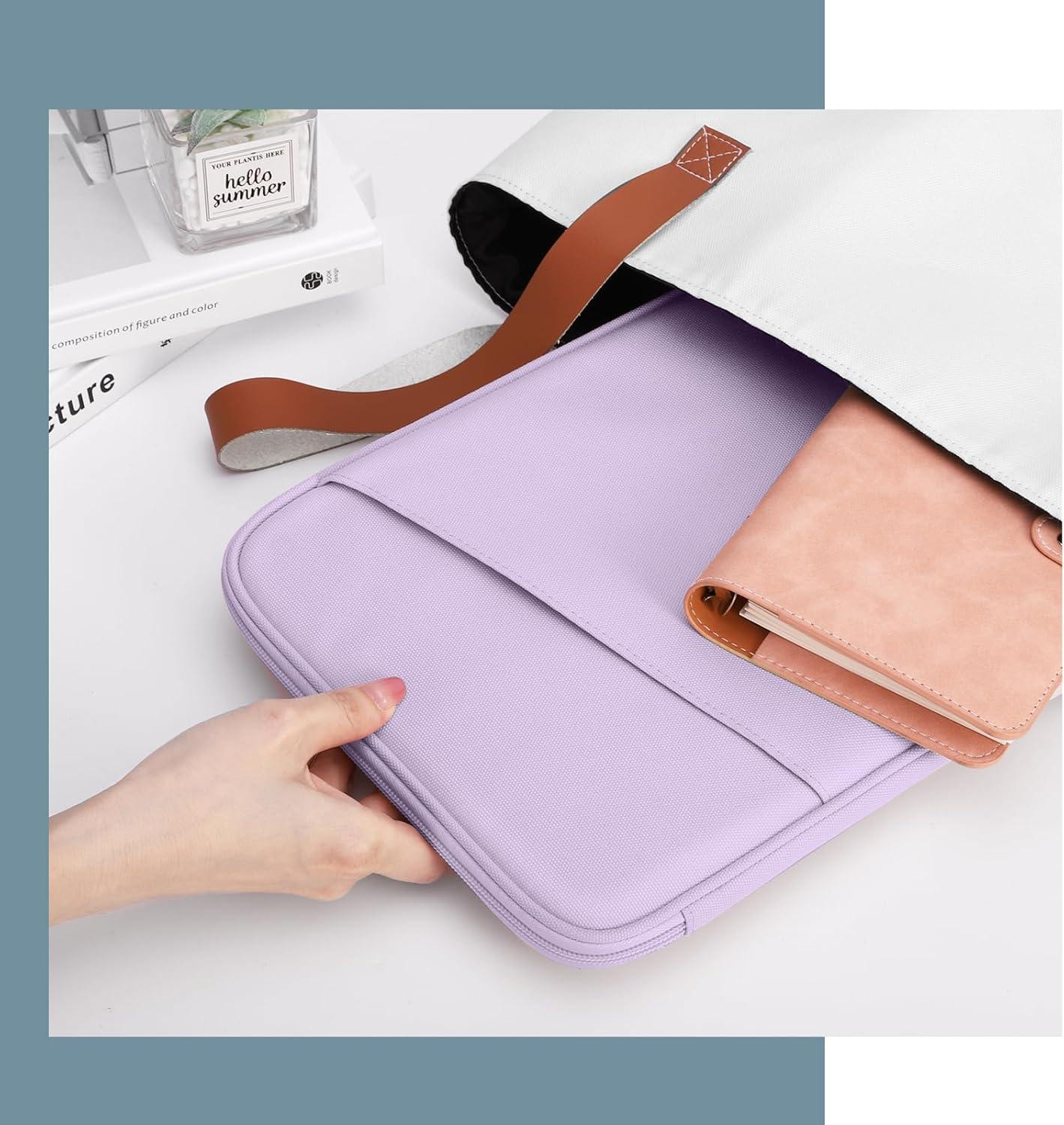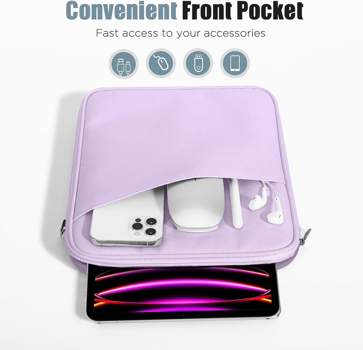TiMOVO 9-11″ Tablet Sleeve for iPad 11-inch A16 2025, iPad 10th Gen. 10.9″, iPad 10.2″, iPad Air 11 Inch/5th/4th Gen. 10.9″, Galaxy Tab A9 Plus 11″, Protective Bag with Pocket, Black(A-Purple Lavender)