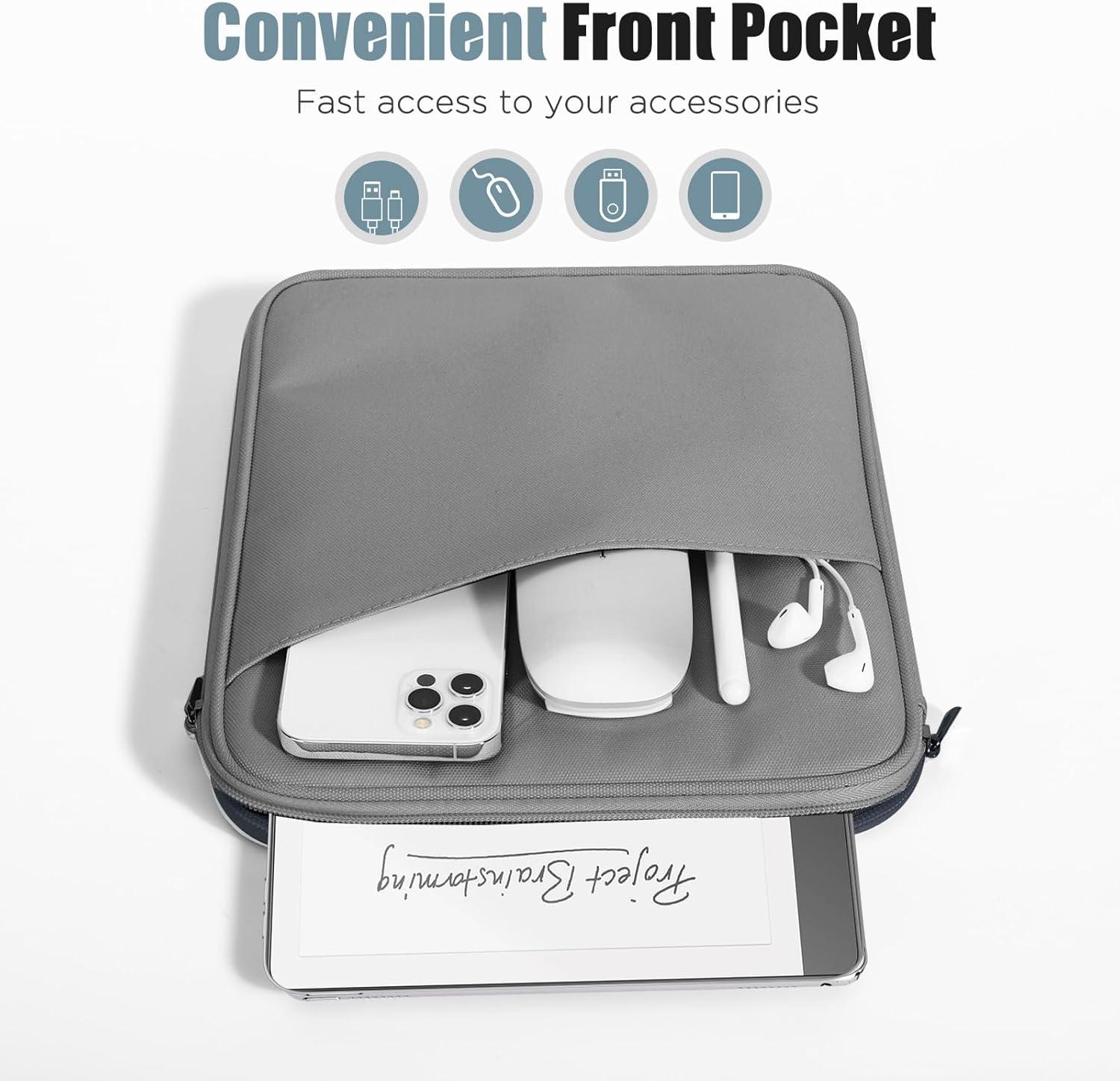 MULTIPLE POCKETS – This sleeve comes with multiple compartments, offering enough space for your tablet and other accessories like cables, mouse, earphone, notes, wallet, cards and more small items.