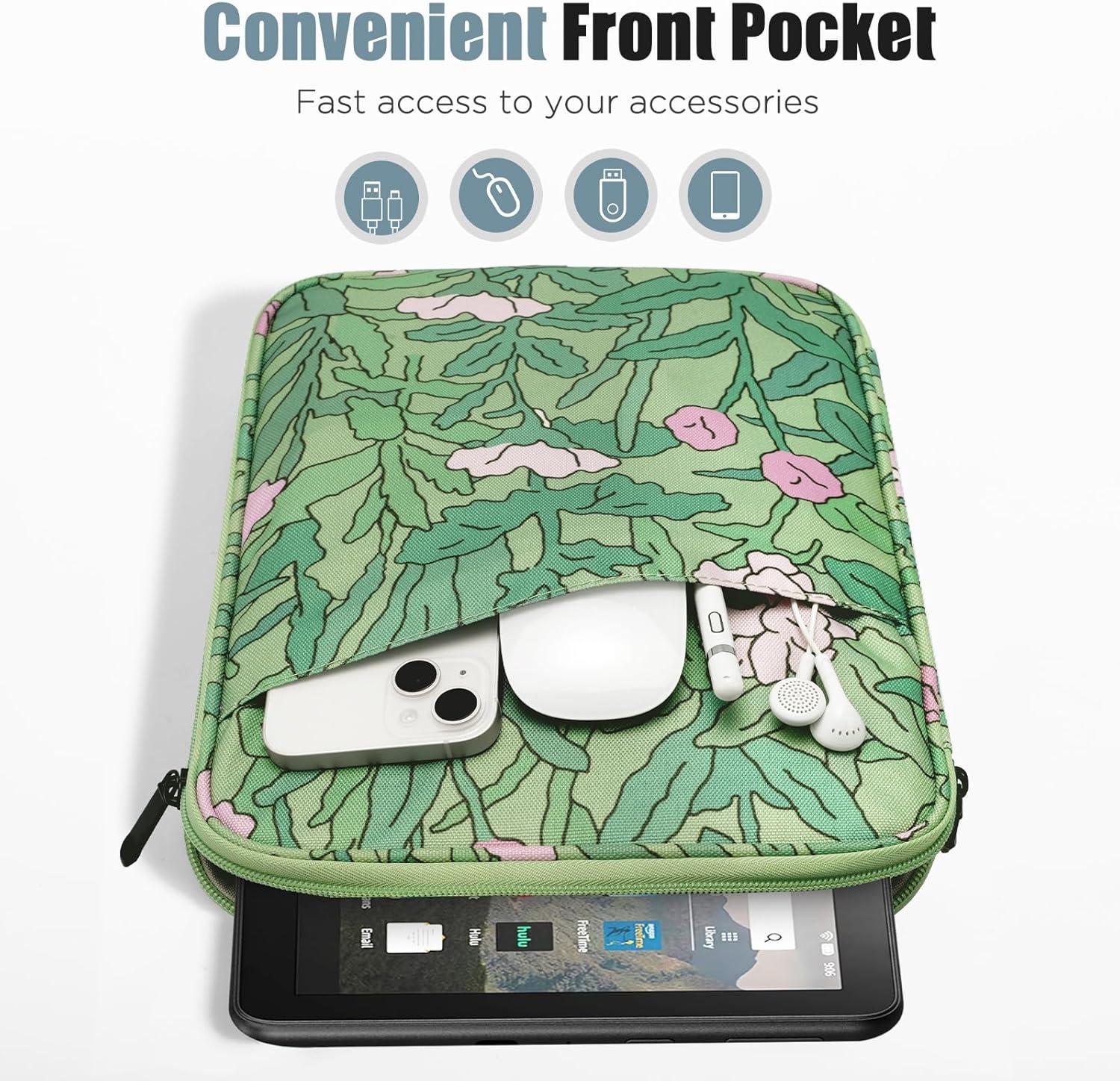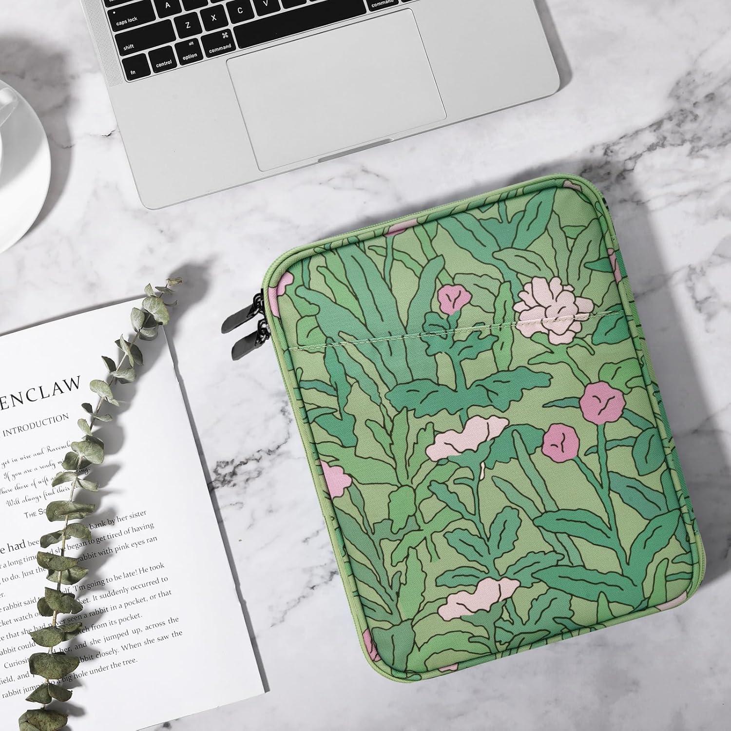 TiMOVO 9-11″ Tablet Sleeve for iPad 11-inch A16 2025, iPad 10th Gen. 10.9″, iPad 10.2″, iPad Air 11 Inch/5th/4th Gen. 10.9″, Galaxy Tab A9 Plus 11″, Protective Bag with Pocket, Black(Aa-Green Flower)