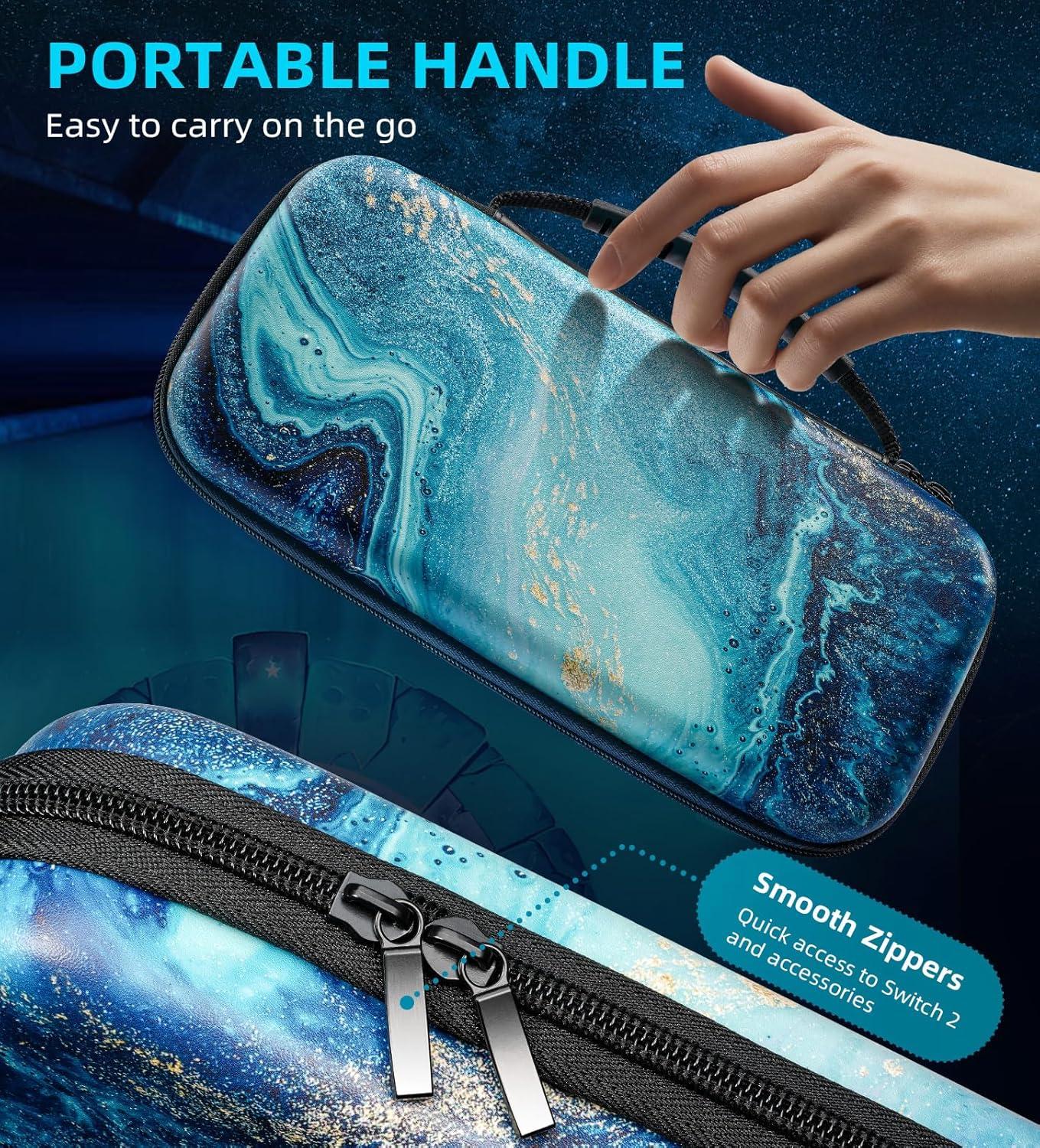 Easy to Use: The smooth double zipper design of the carry case allows you to take out and put in all the Switch 2 accessories quickly and easily. The Switch 2 storage case also has a sturdy rubberized handle that makes it easy to carry around. It meets your travel and on-the-go needs.
