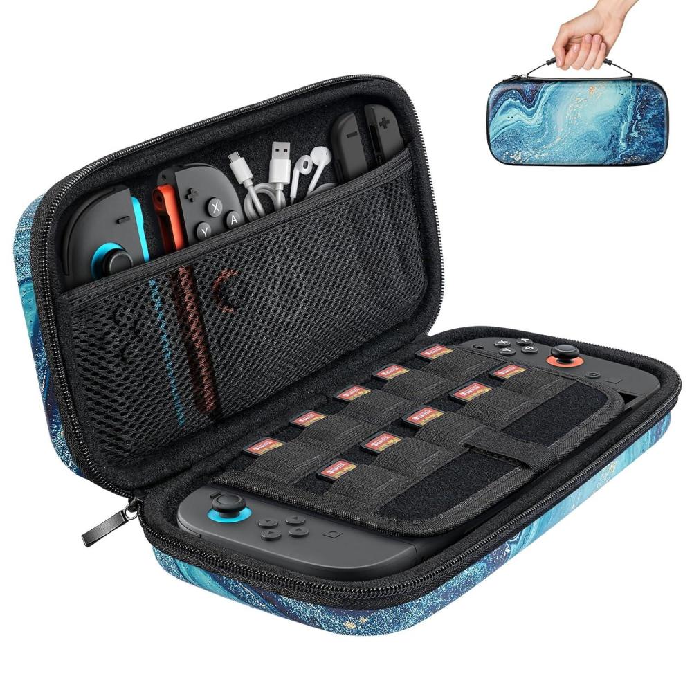 Large Capacity: The Switch 2 case can easily store 10 Switch game cards, so you can carry and change your favorite games wherever you go. You can also store spare JoyCons, charging cables, JoyCon wrist straps, earphones and other small accessories in the mesh pocket to keep everything organized.