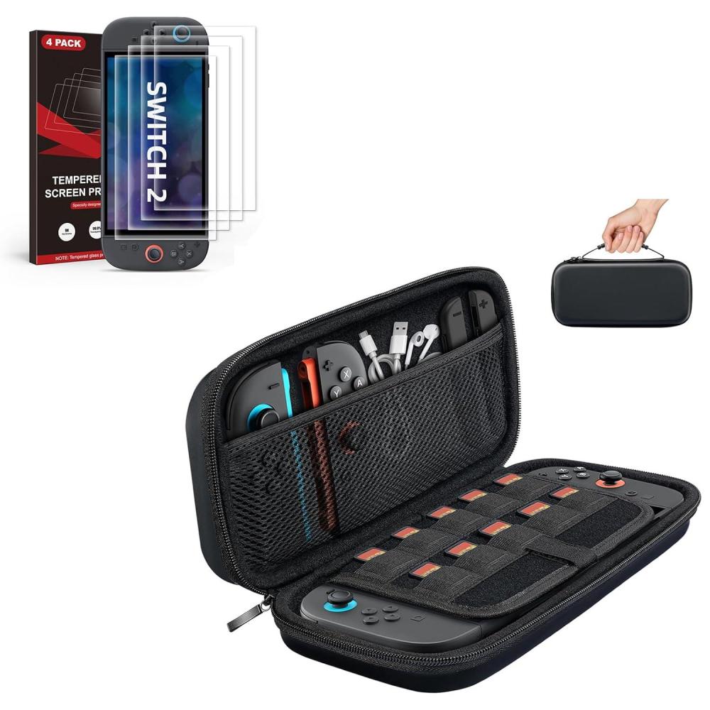 Case and Tempered Glass Screen Protector for Switch 2