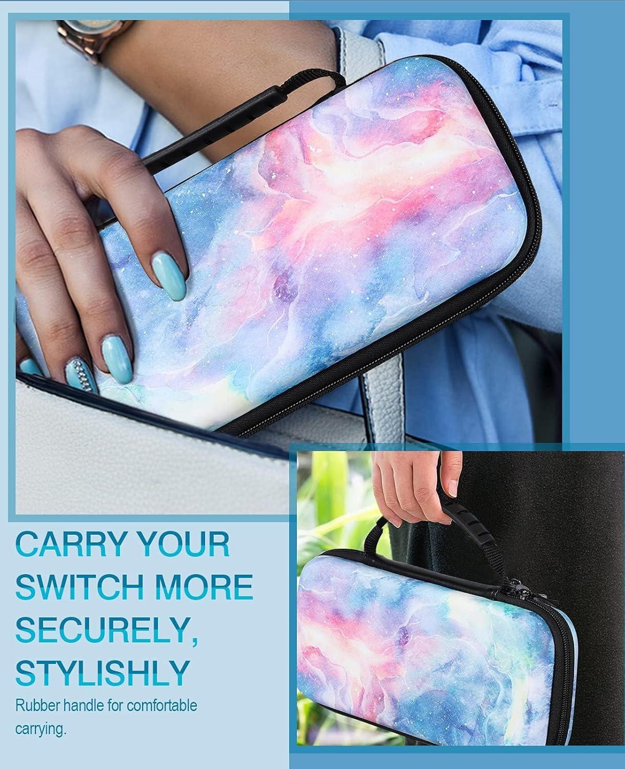 TiMOVO Carrying Case Compatible with Nintendo Switch OLED Model 2021 & Switch, Durable Hard Shell Game Storage Handbag Portable Travel Bag PU Pouch with Pocket for 10 Game Cards & Accessories, Gilding(Dreamy Nebula)