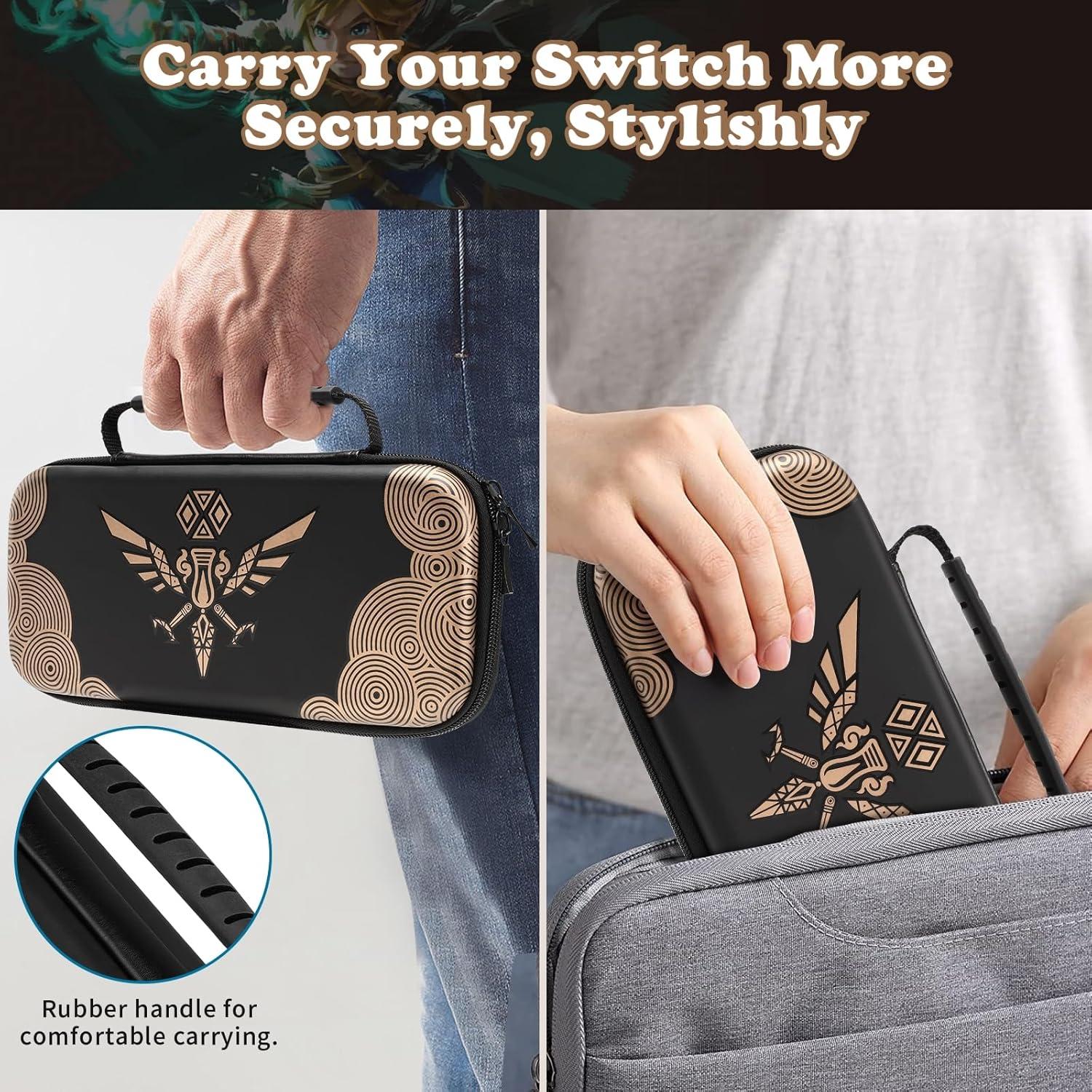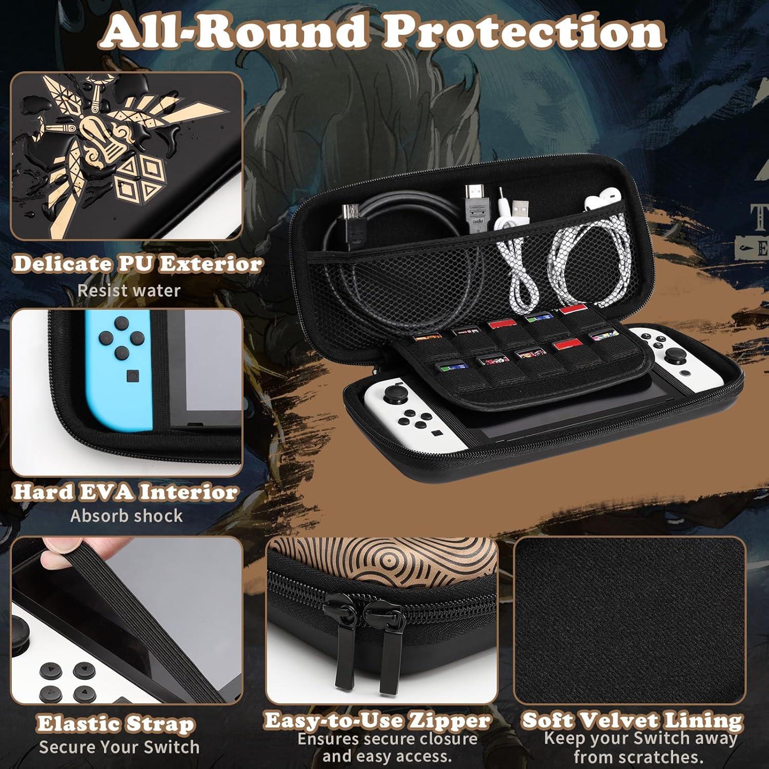 TiMOVO Carrying Case Compatible with Nintendo Switch OLED Model 2021 & Switch, Durable Hard Shell Game Storage Handbag Portable Travel Bag PU Pouch with Pocket for 10 Game Cards & Accessories, Gilding(Black Gold Eagle)