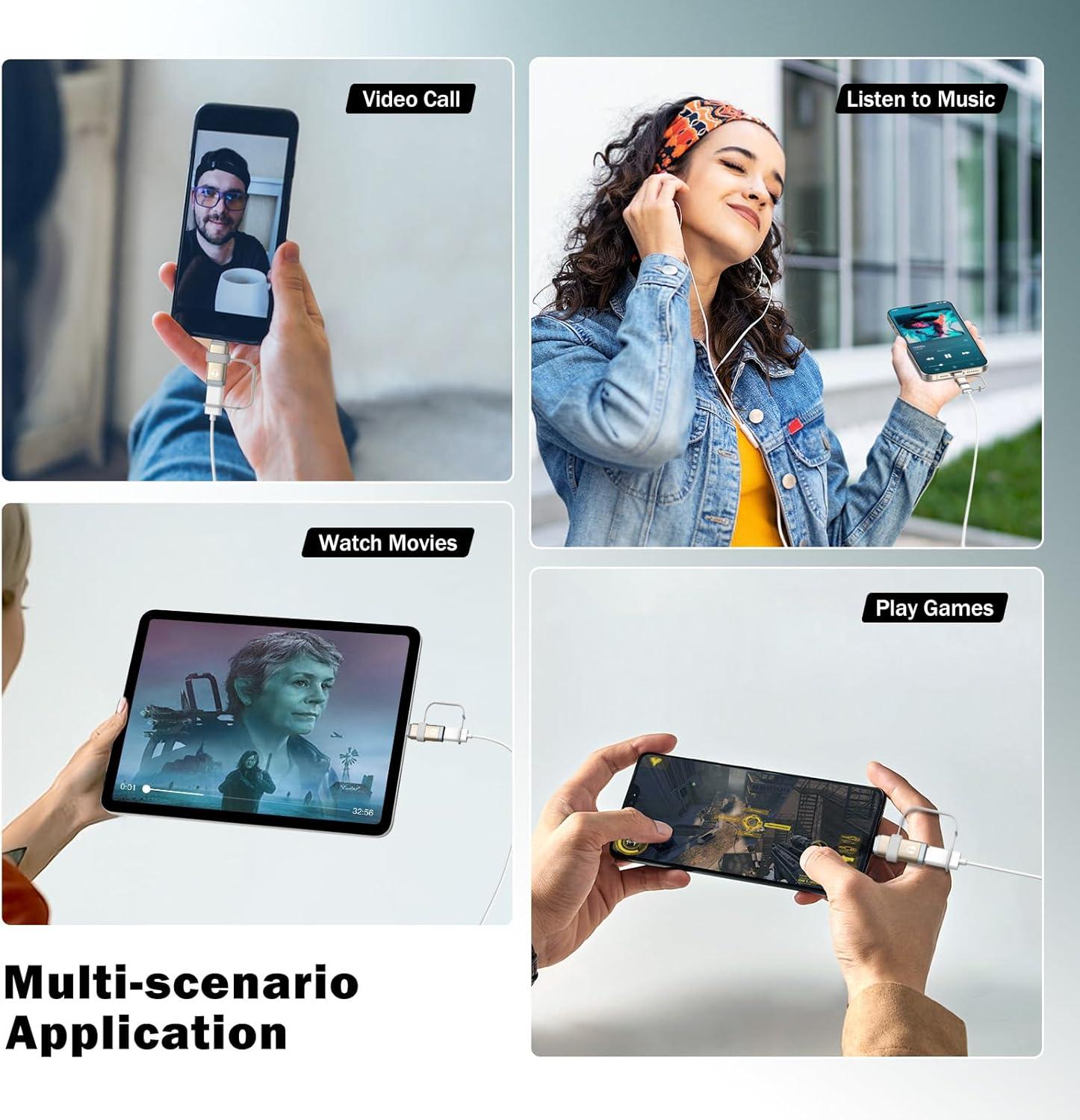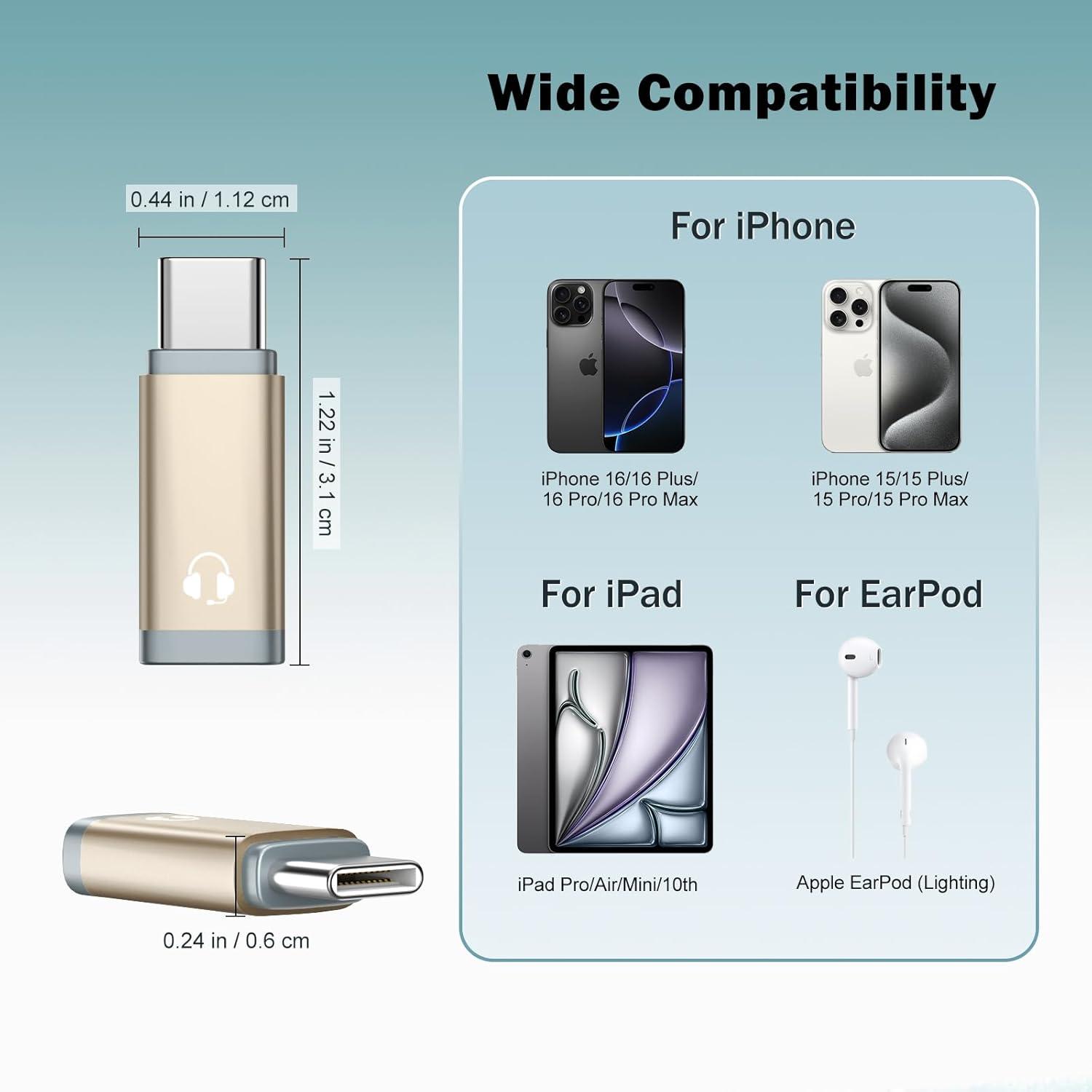 Wide Compatibility: The lightning to usb c audio adapter is compatible with most Type-C devices, such as iPhone 16/16 Plus/16 Pro/16 Pro Max, iPhone 15/15 Plus/15 Pro/15 Pro Max, iPad Pro 13'' 2024, iPad Pro 11'' 2024, iPad Air 13'' 2024, iPad Air 11'' 2024, iPad Pro 12.9''/11'', iPad 10th Gen 2022, iPad Air 4/5, iPad Mini 6, Galaxy S24/23/22/21 Series, Galaxy Z Flip/Fold Series, Huawei, Pixel and more.