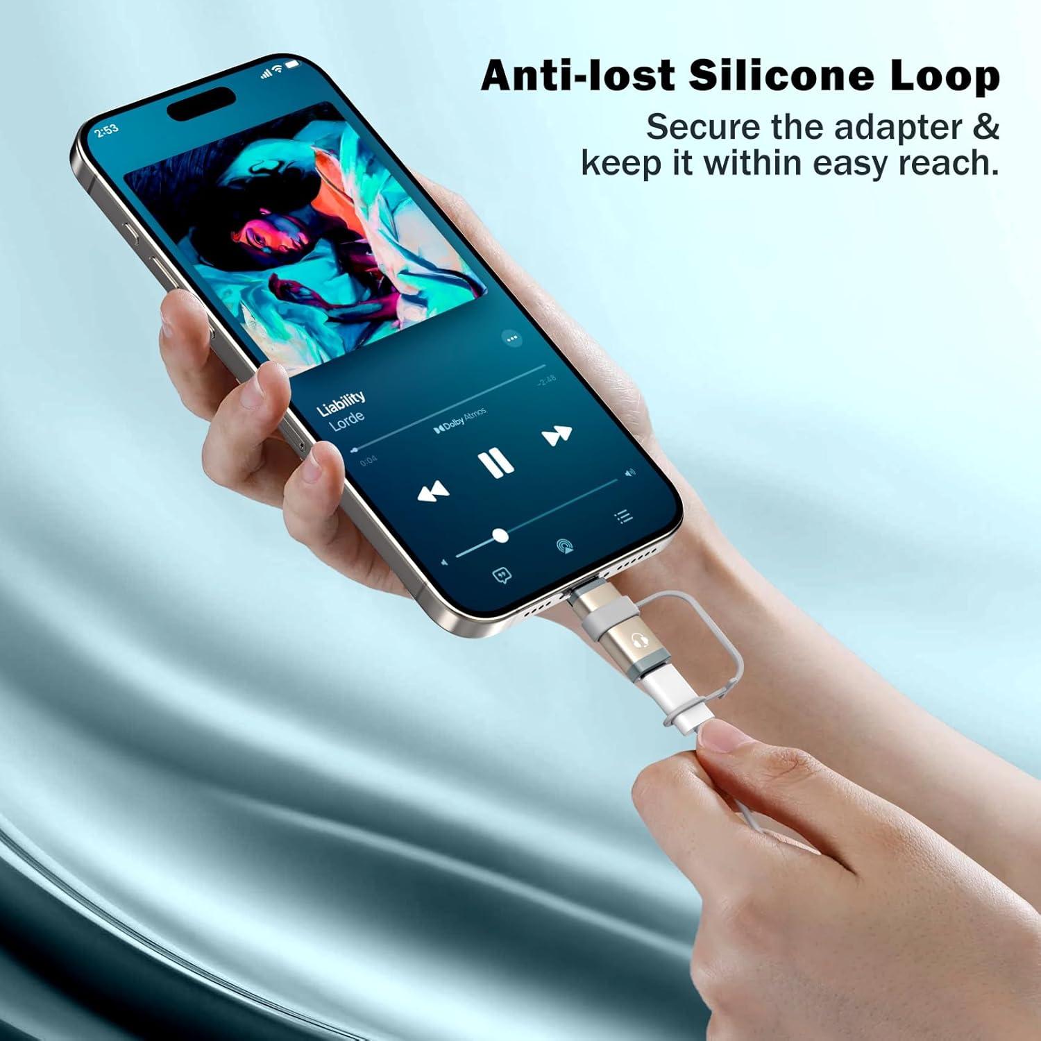 Compact & Portable: This usb c to lightning audio adapter is small in size and fits easily in your pocket for on-the-go use. Whether you are working, doing fitness, traveling, or driving, simply connect it with headphone, and plug it into a USB C device, then you can enjoy a Hi-Fi audio experience anytime, anywhere. Equipped with a silicone loop, it allows you to attach the adapter to your most-used cables to prevent loss.