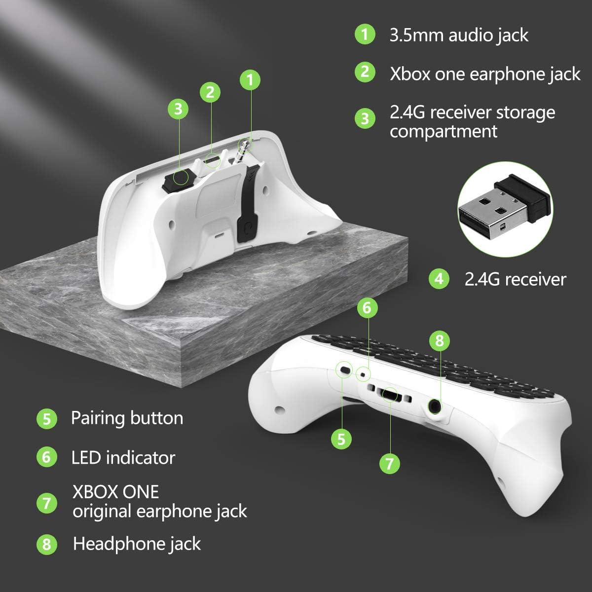 TiMOVO Green Backlight Keyboard for Xbox One, Xbox Series X/S,Wireless Chatpad Message KeyPad with Headset & Audio Jack,Mini Game Keyboard Fit Xbox One/One S/One Elite/2, 2.4G Receiver Included, Black(White)
