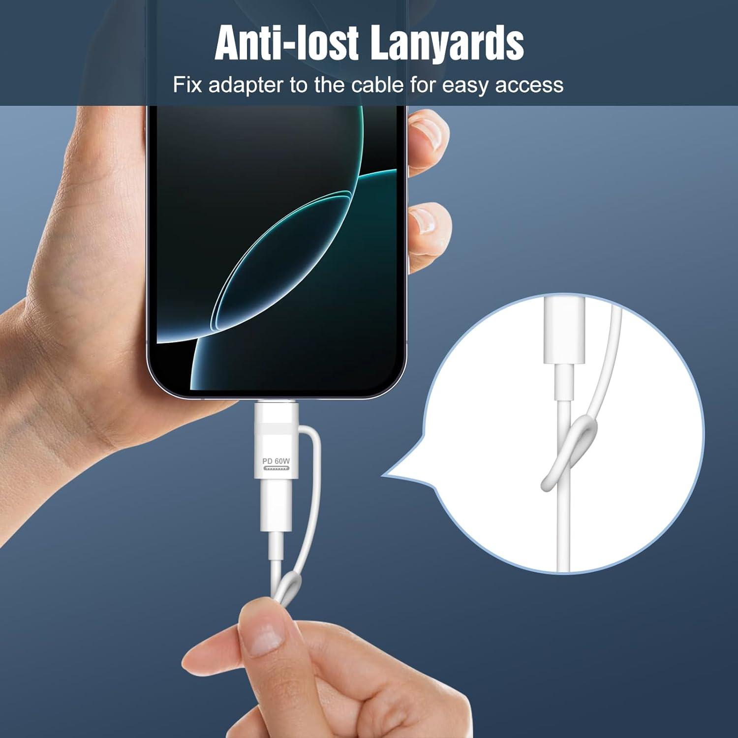 TiMOVO Lightning to USB C Adapter, 2 Pack Lightning Female to USB C Male Adapter with 60W Fast Charge & Anti-Lost Loop for iPhone 16/15 Pro Max/Pro/Plus, iPad, MacBook Pro/Air,Galaxy S24/S25/S23-White(4 Pack White)