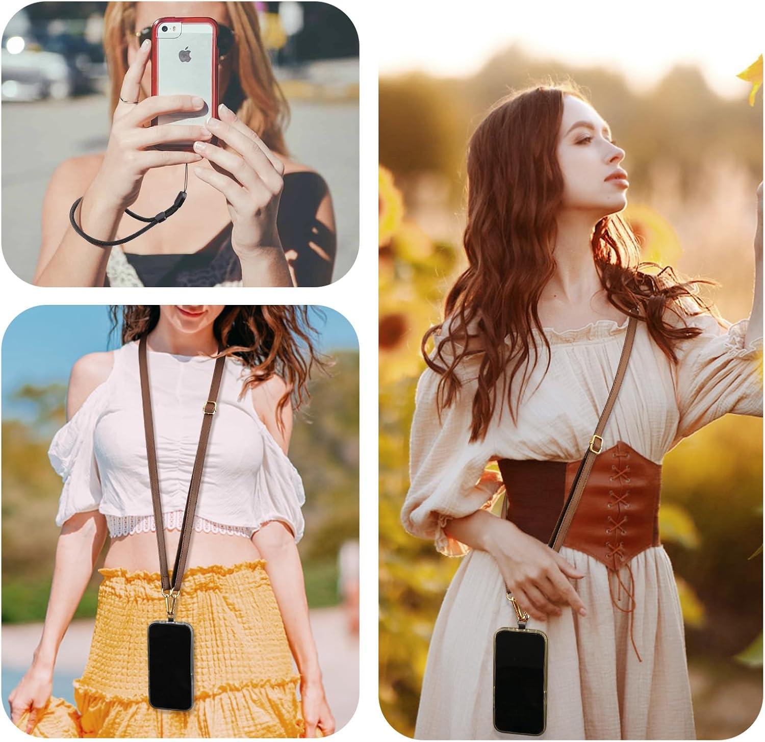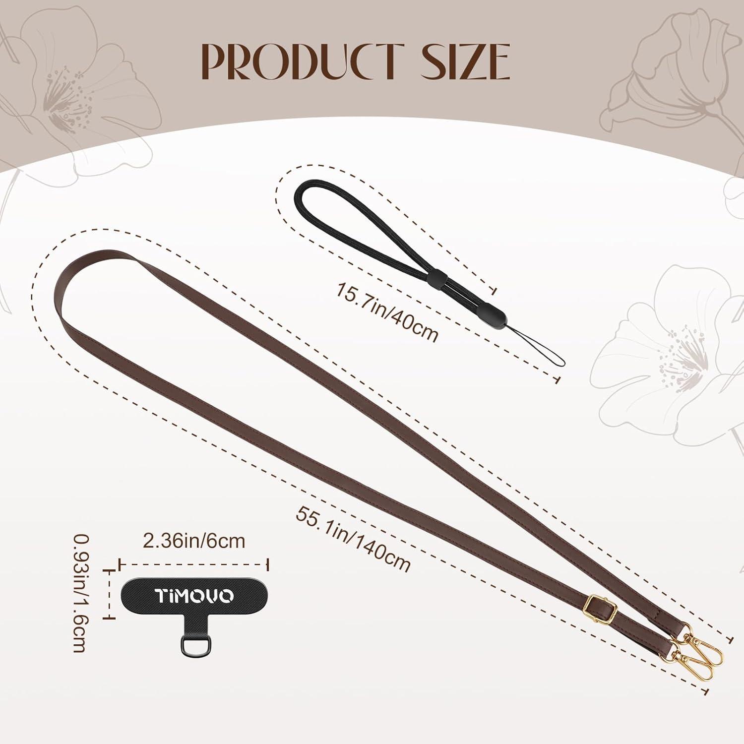 TiMOVO Phone Crossbody Strap, Adjustable Phone Lanyard with 1× Leather Phone Strap, 1× Wrist Strap, 1× Pads, Crossbody Phone Lanyards, Adjustable Phone Chain Compatible with Most Smartphones, Brown
