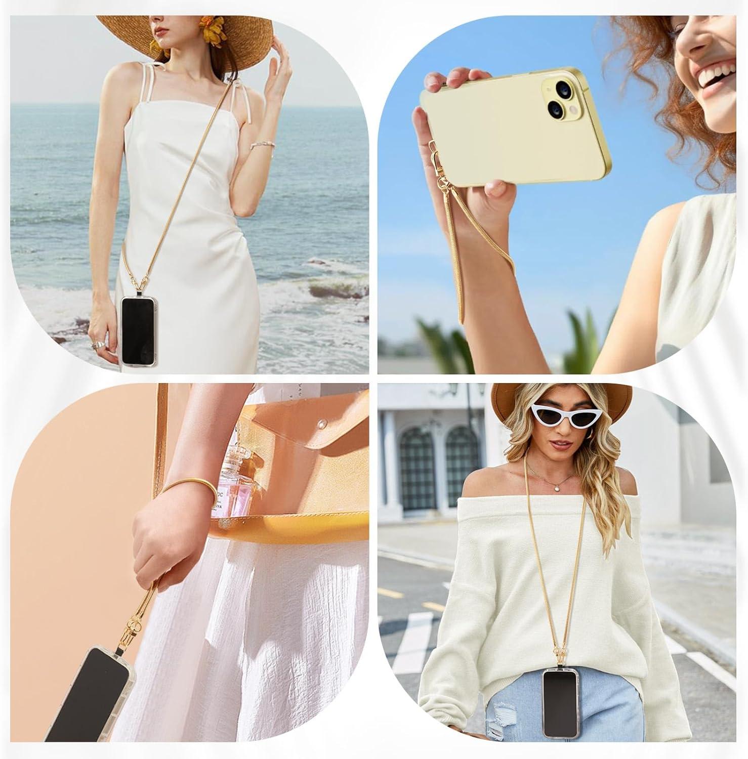 【Premium Golden Phone Chain】Designed with premium metal chain, the phone necklace is elegant and solid. Wear-resistant and sturdy metal ensures durability and avoid accidental falling off. The golden phone chain can be carried over the shoulder or across the body, making it easy to carry your phone and bringing a subtle sense of style.