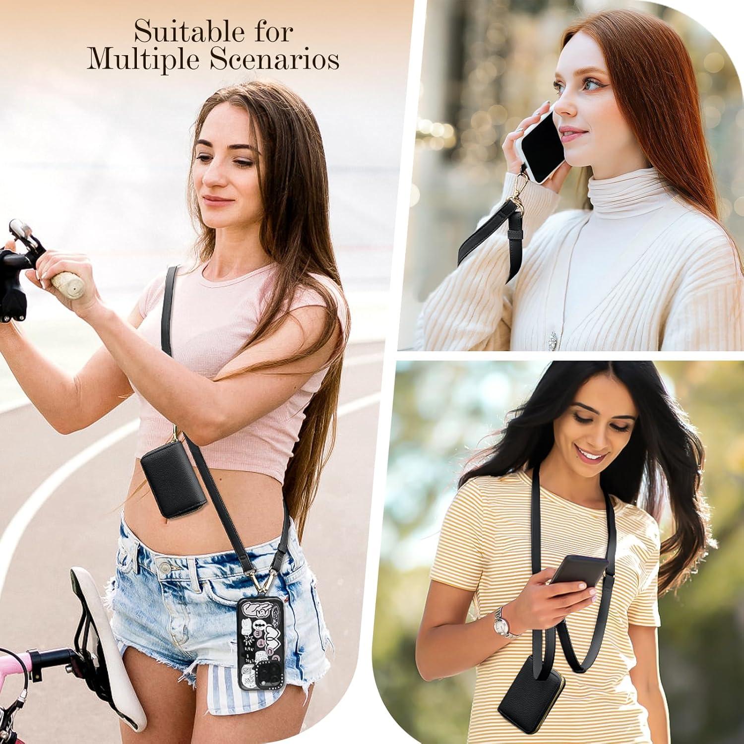 【Comfortable to Carry】The cross-body phone strap is made of high quality artificial leather, which is wear resistant and can be used for a long time. The soft leather material won't bring too much burden on your shoulders, especially suitable for holding children, shopping, walking the dog, cycling or travelling, freeing your hands!
