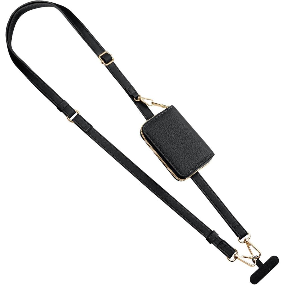 TiMOVO Phone Lanyard, Strap with Leather Wallet Pouch, Universal Crossbody Phone Lanyard Adjustable Neck Strap, Compatible with Most Smartphones, Black(Black)