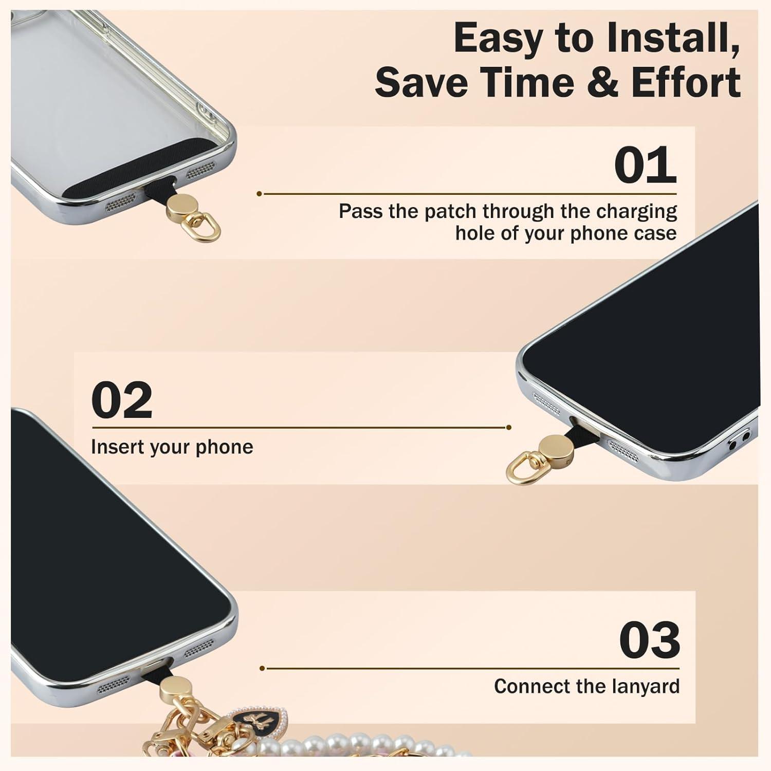 Easy Installation & Effortless Charging: No tools required. Simply insert the patch through the hole of the phone case, place the phone into the case and then connect the lanyard. The patch is as thin as 0.04 inches, does not block the charging port, and supports wired or wireless charging, so you can charge easily without removing it.