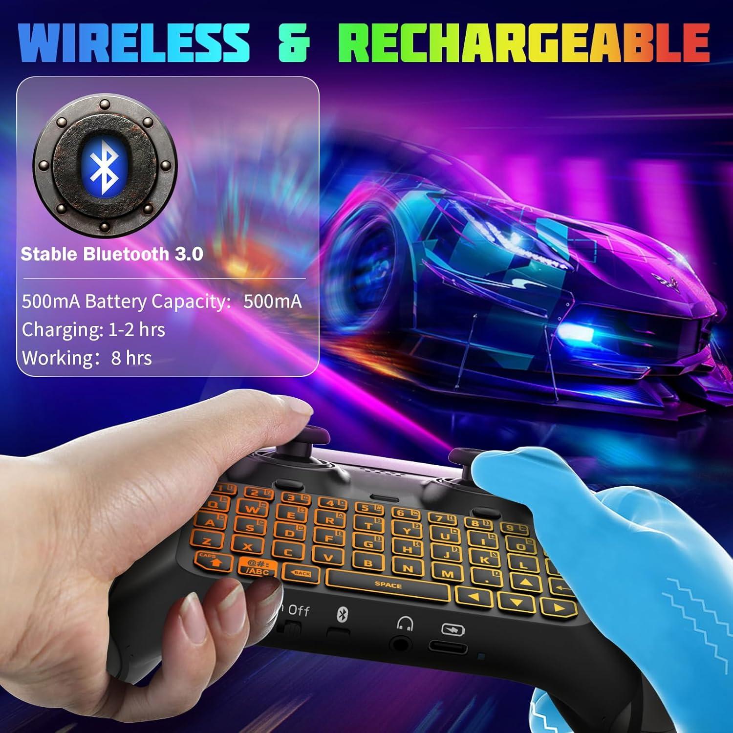 TiMOVO RGB Backlight Keyboard for PS5 Edge Controller, Wireless Bluetooth Keypad Chatpad for PS5 Dualsense Edge Controller, Mini PS5 Edge Keyboard with Built-in Speaker & 3.5mm Audio Jack, Black