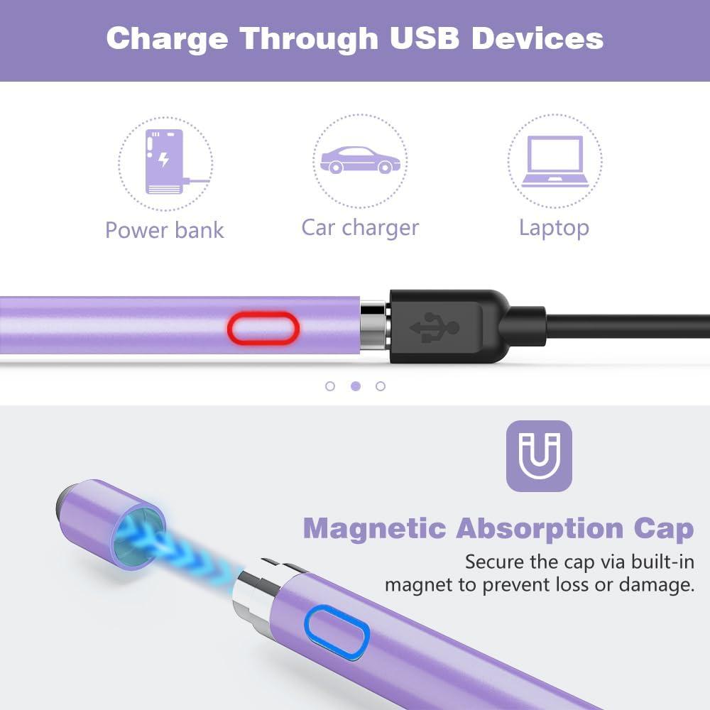 TiMOVO Stylus Pen for iPad 11th/10th/9th/8th/7th Generation, 20Hrs Work Palm Rejection iPad Pen Compatible with iPad Air 11″/13″(M3/M2)/5th/4th, Mini 6th/5th High Precise iPad Pencil 1st Gen, White(Purple)