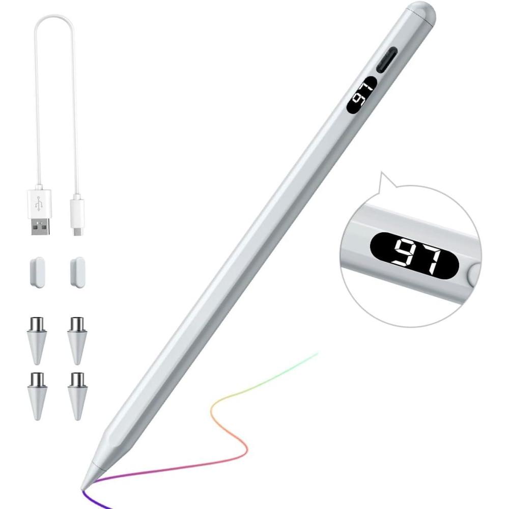 TiMOVO Stylus Pen for Touch Screens, Fast Charge Stylus Pen for Apple iPad/iPhone/Xiaomi/Samsung Android Capacitive Touch Screen Stylus Pen with Power Display, White(Silver)