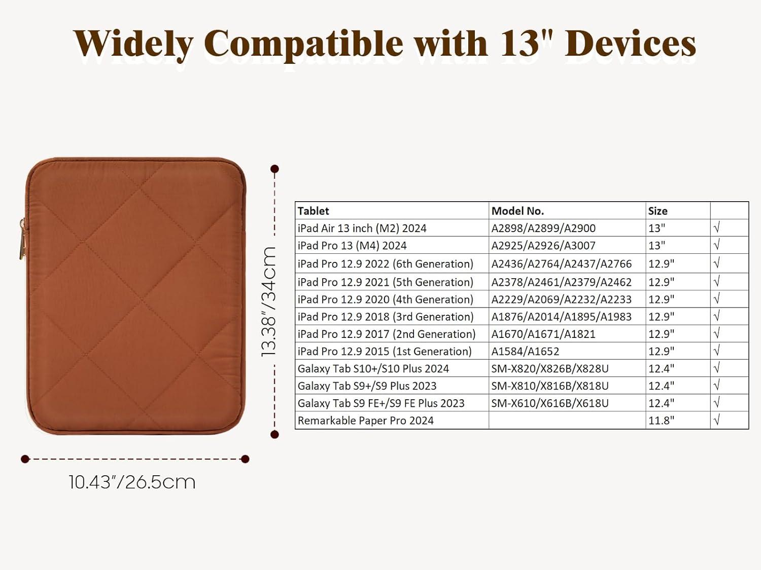 Premium Diamond Quilted Protection: Experience superior cushioning with our shock-absorbing puffy design – each puffy cell traps air to dissipate impact energy, keeping your tablet safe from drops and bumps. The plush interior lining features soft micro-fiber to prevent screen scratches, while the sleek beige texture elevates your style for business meetings, campus use, or travel.
