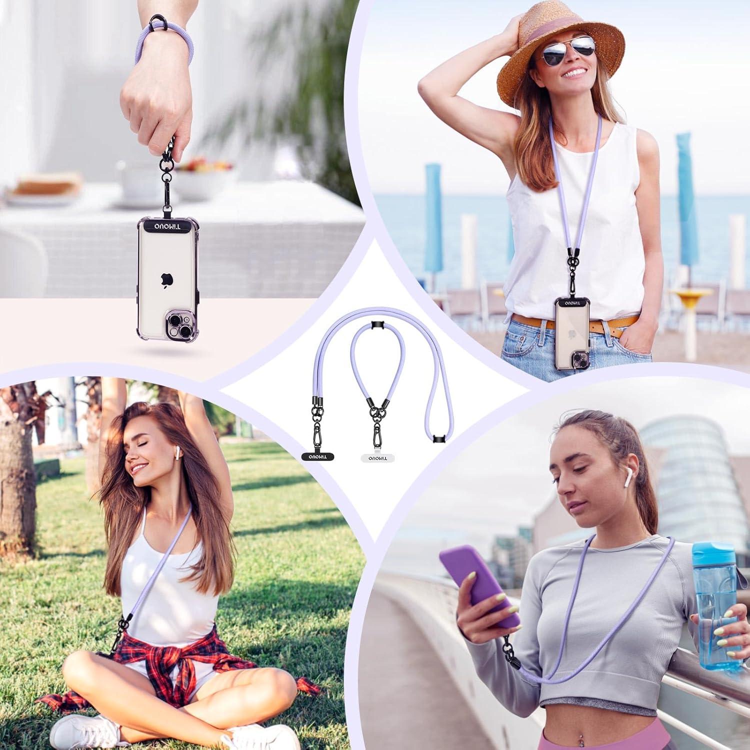 TiMOVO Universal Phone Lanyard Crossbody, Adjustable Anti-Theft Phone Strap Crossbody for Phone Cases, Cell Phone Neck Lanyard Wrist Strap for Women, Khaki(Light Purple)