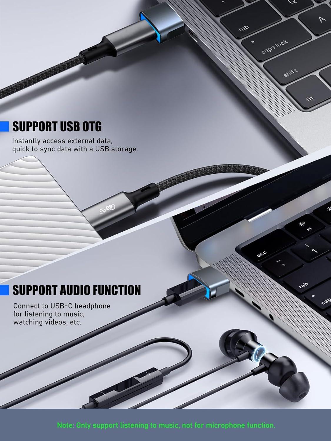 Data Transfer and OTG Function: The USB C to USB adapter provides up to 480 Mbps (USB 2.0) data transfer speed, and supports OTG, video and audio functions. You can connect it to external devices such as card readers, USB flash drives, keyboards, mice, MIDI keyboards, lavalier mics, digital headphones.